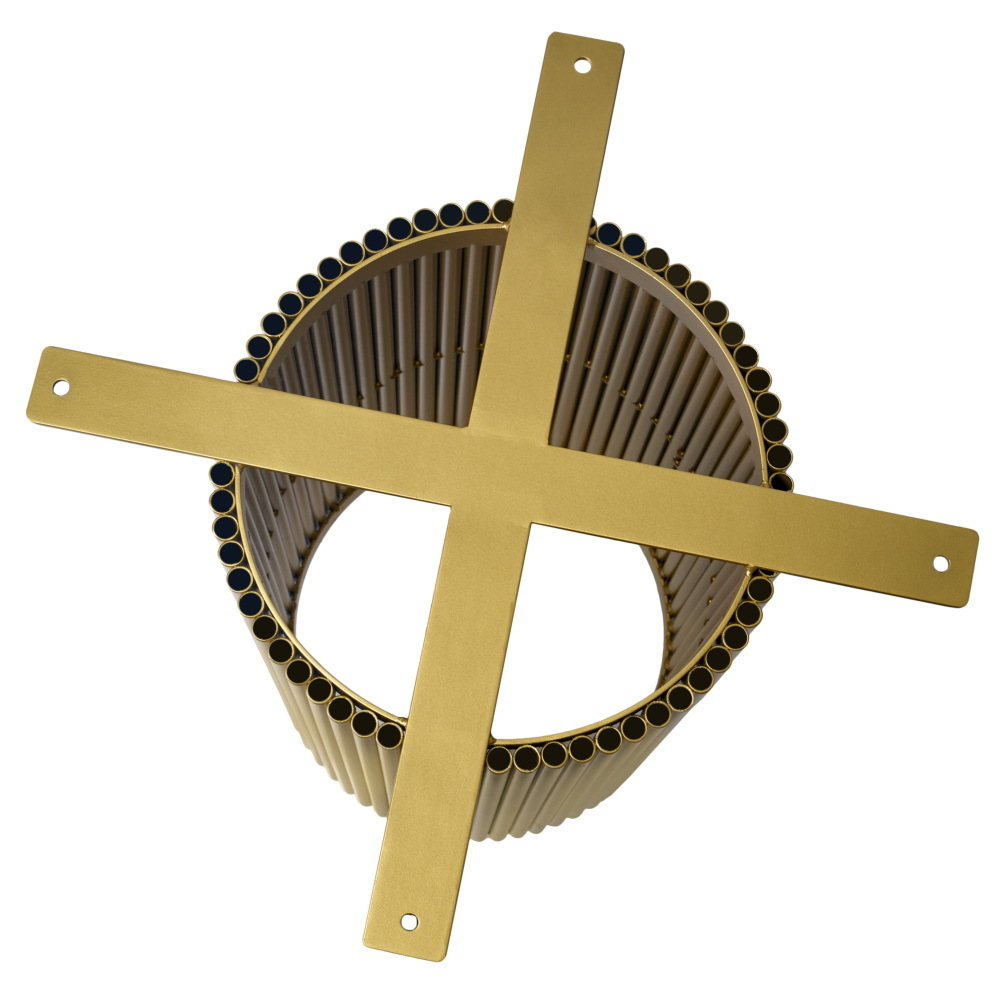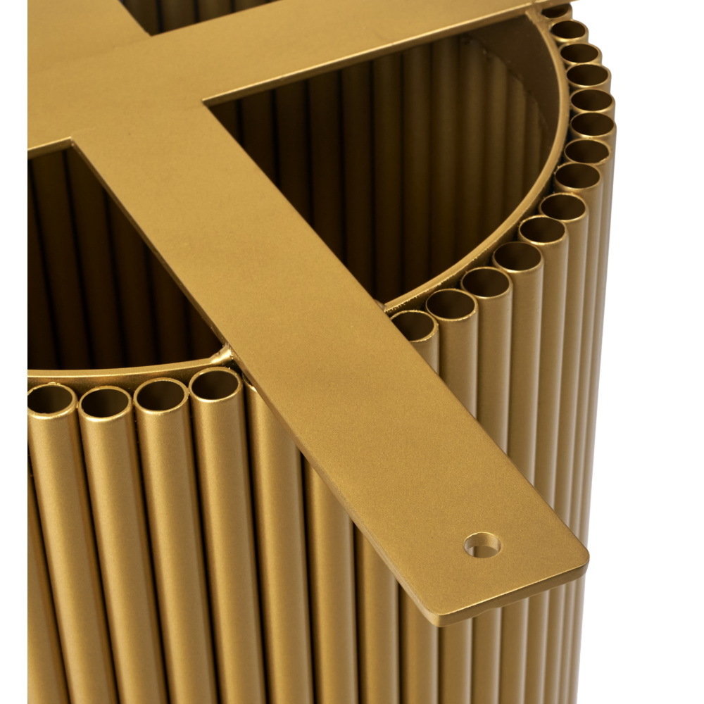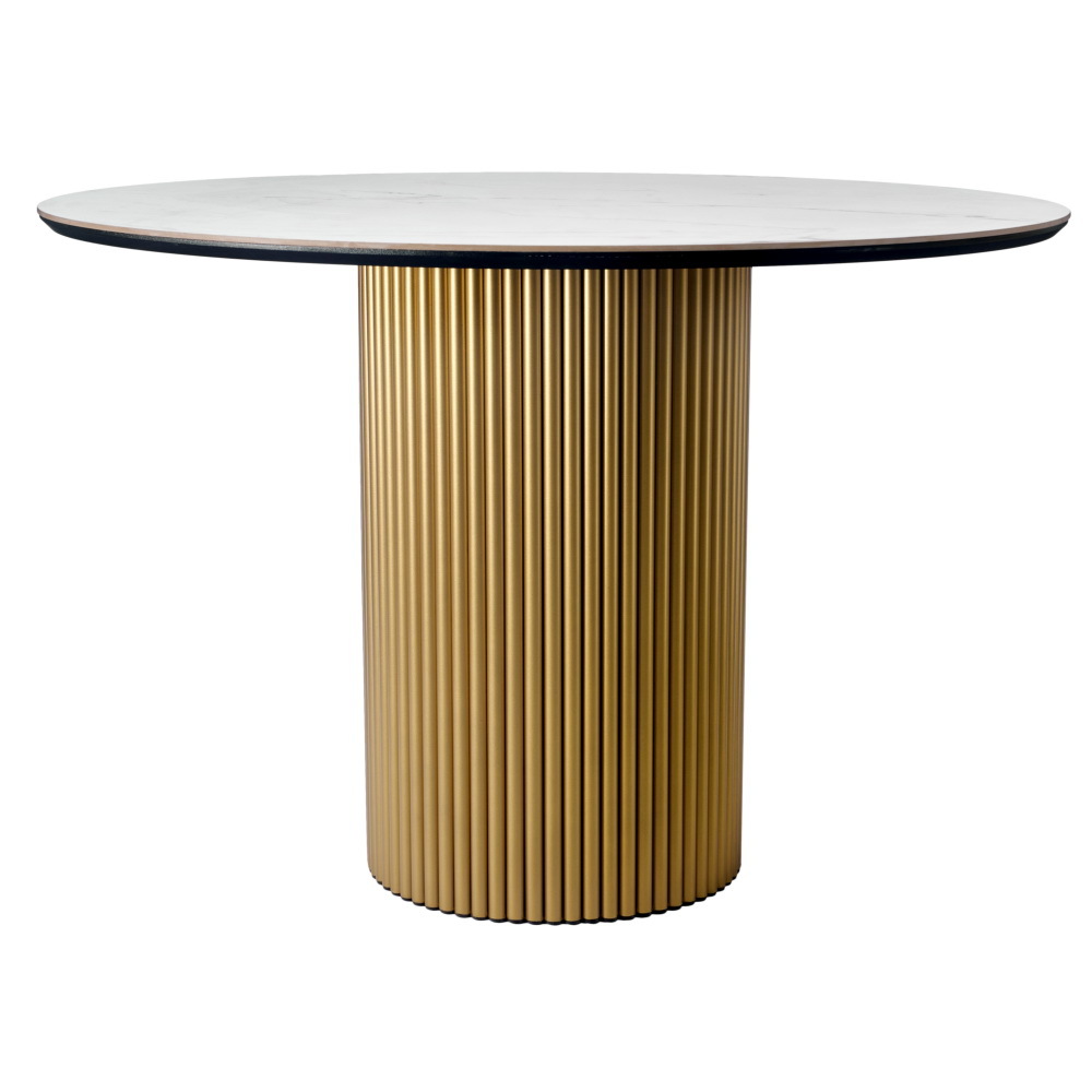 Элегантная круглая опора: металлическая основа золотого цвета придает столу стабильность и стильный современный вид, идеально гармонируя с мраморной столешницей.