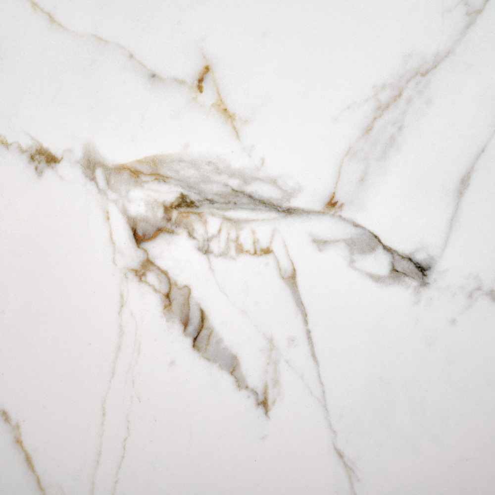 Роскошный дизайн: кристально-белый фон столешницы с элегантными серыми прожилками и изысканными золотистыми деталями добавляет нотку роскоши и утонченности интерьеру.