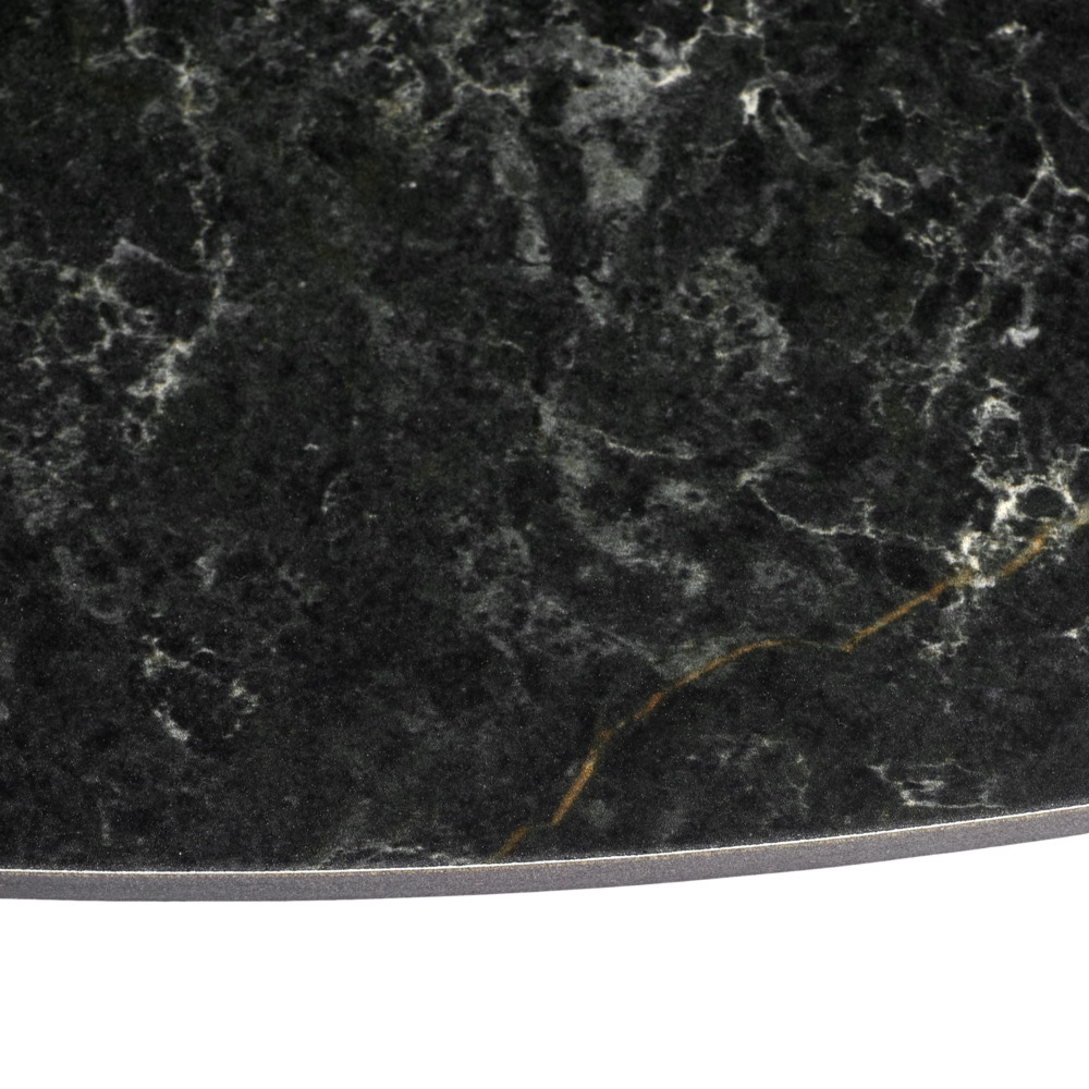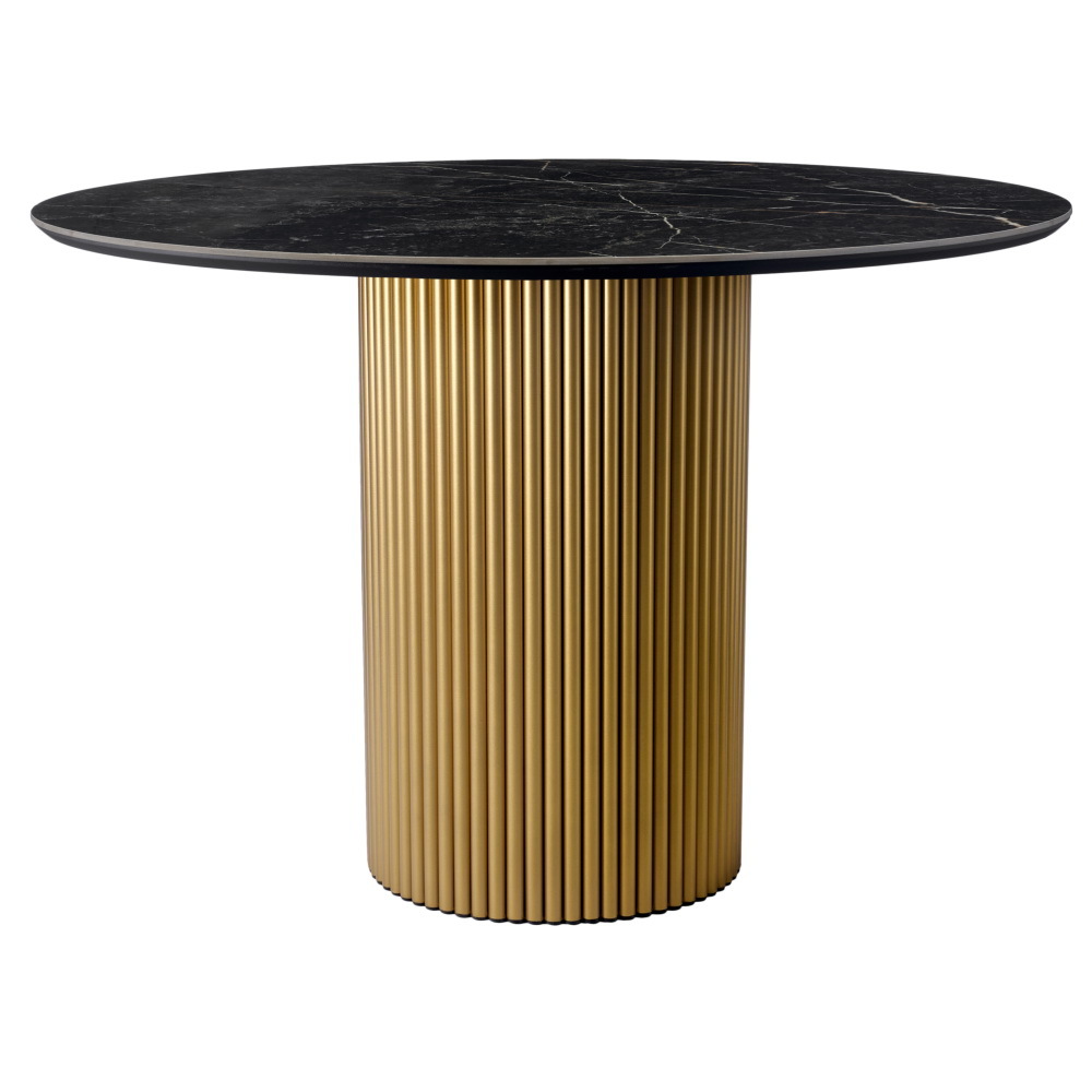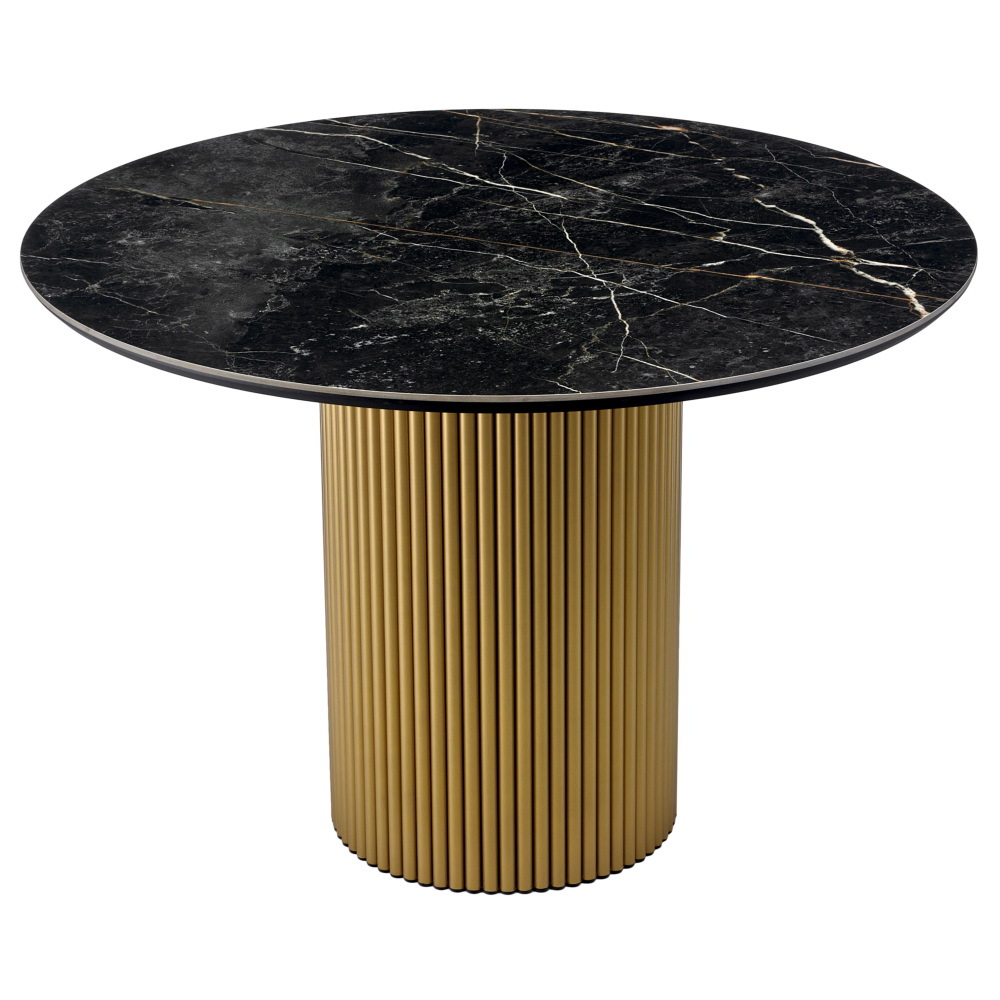 Стильный нераздвижной стол Aura – идеальное сочетание элегантности и функциональности. Стол Aura обладает глянцевой премиальной круглой столешницей из керамики, имитирующей чнрный мрамор, диаметром 110 см.