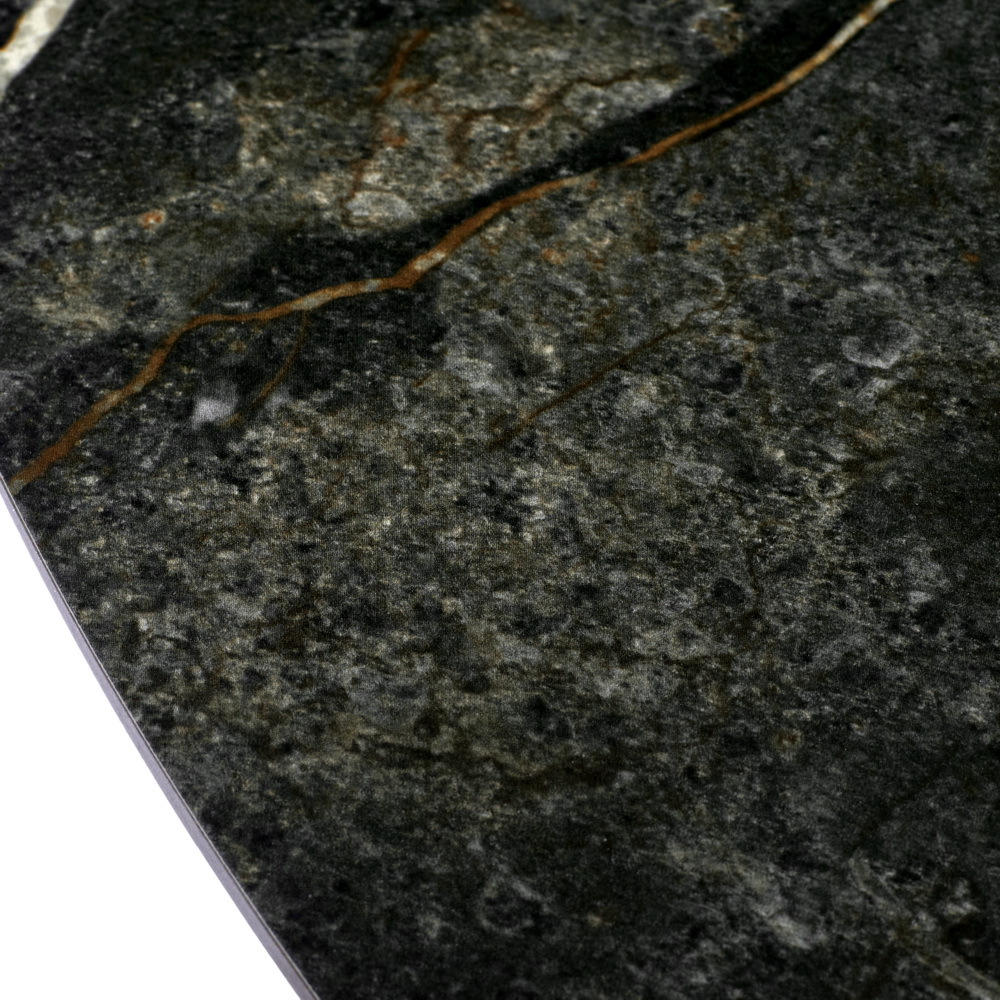 Роскошный дизайн: кристально-черный фон столешницы с элегантными серыми прожилками и изысканными золотистыми деталями добавляет нотку роскоши и утонченности интерьеру.