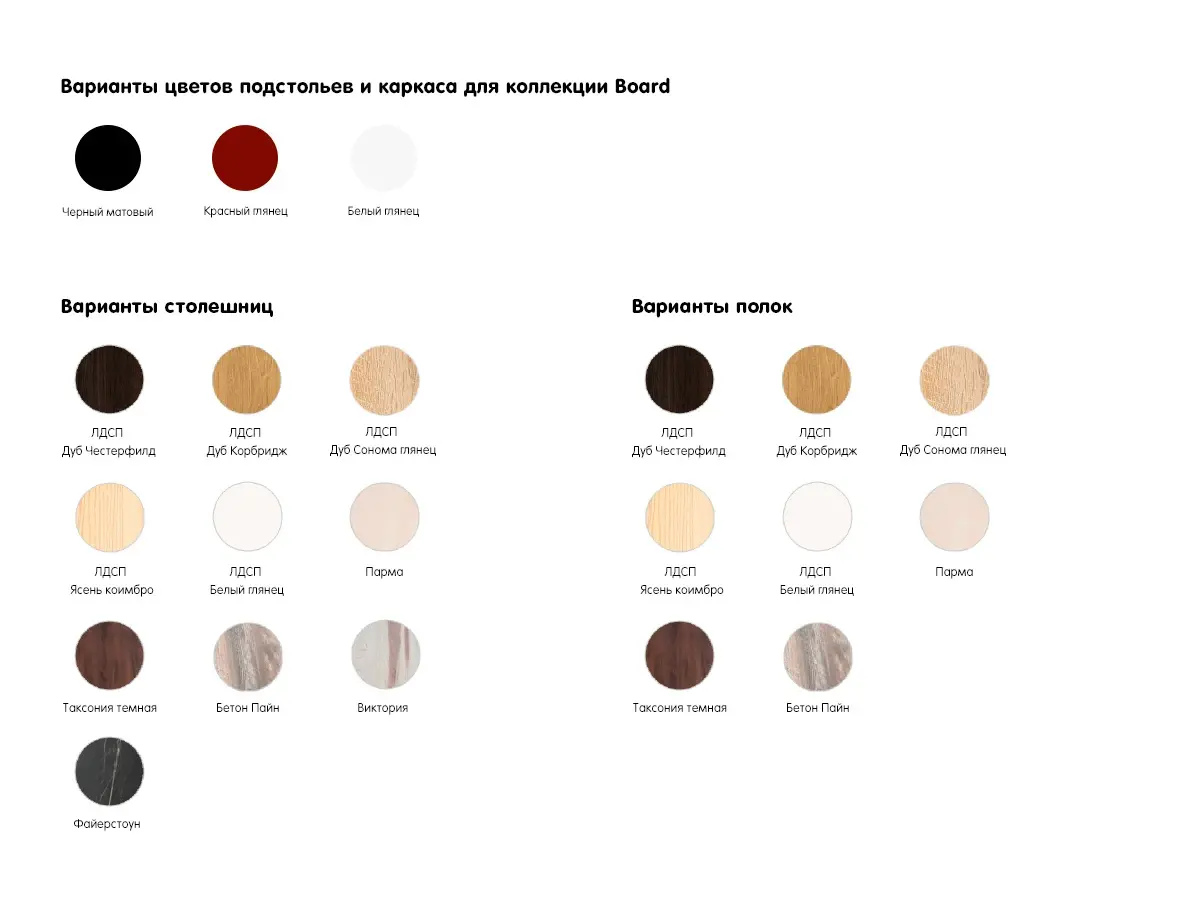 Коллекция Board — мебель для рабочих и учебных зон с индустриальным характером. Лаконичная, практичная и вариативная. Для офиса на дому или в общественной локации, для школьника, студента, творческих и мастерских — многофункциональные столы со встроенными тумбами и стеллажами помогут создать упорядоченное, рационально организованное рабочее место. Идеально, когда: важные вещи, документы — на расстоянии вытянутой руки, а на поиски нужного уходит не более 2 минут, нет лишних визуальных раздражителей, за каждым предметом закреплено место.