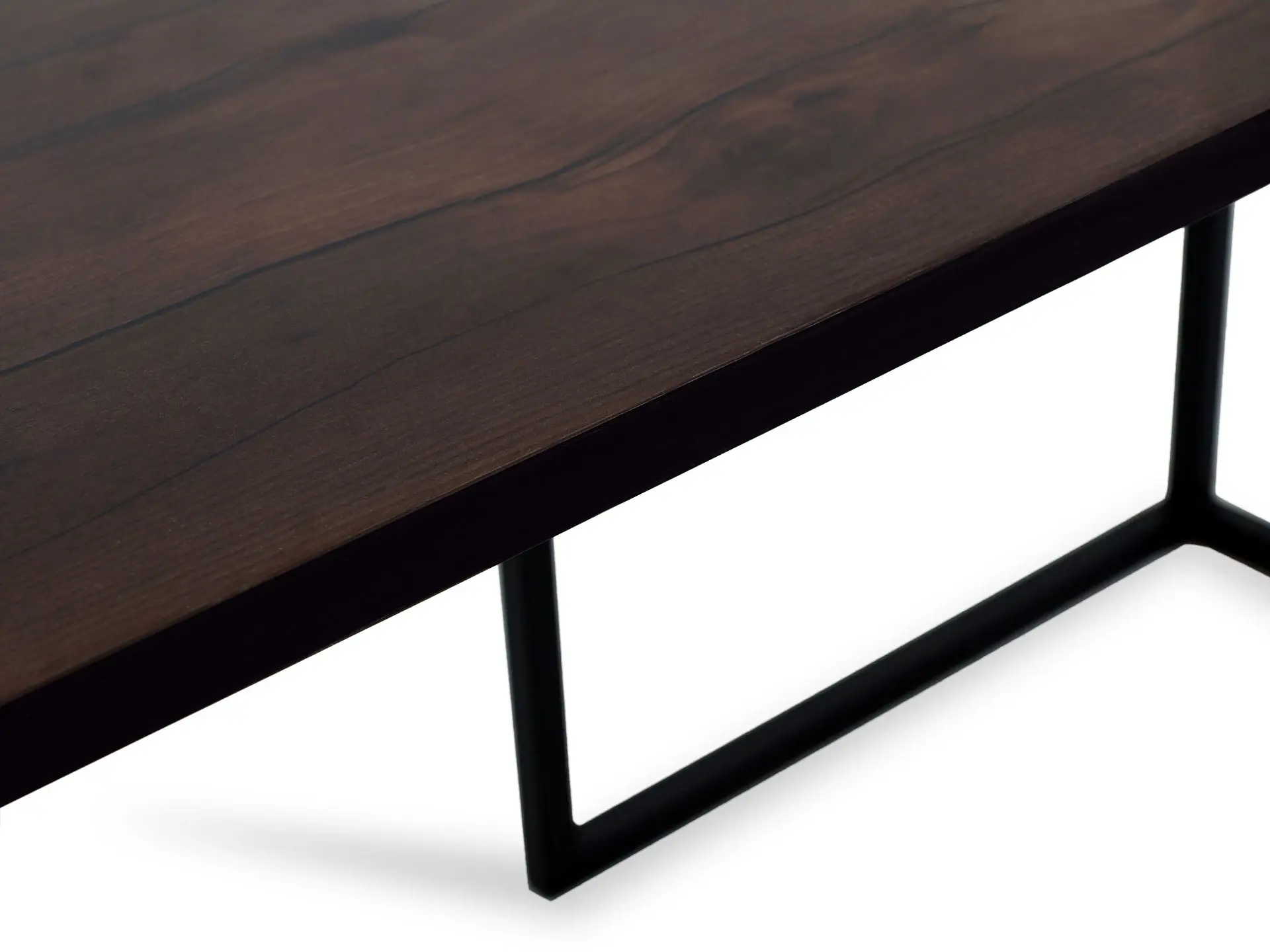 Насыщенный темный цвет с желтоватыми просветами подчеркивает характер декора. Небольшие сучки и типично волокнистая текстура придают естественности наряду со слегка изогнутыми участками. Материал отлично комбинируется с черным матовым или белым основанием.