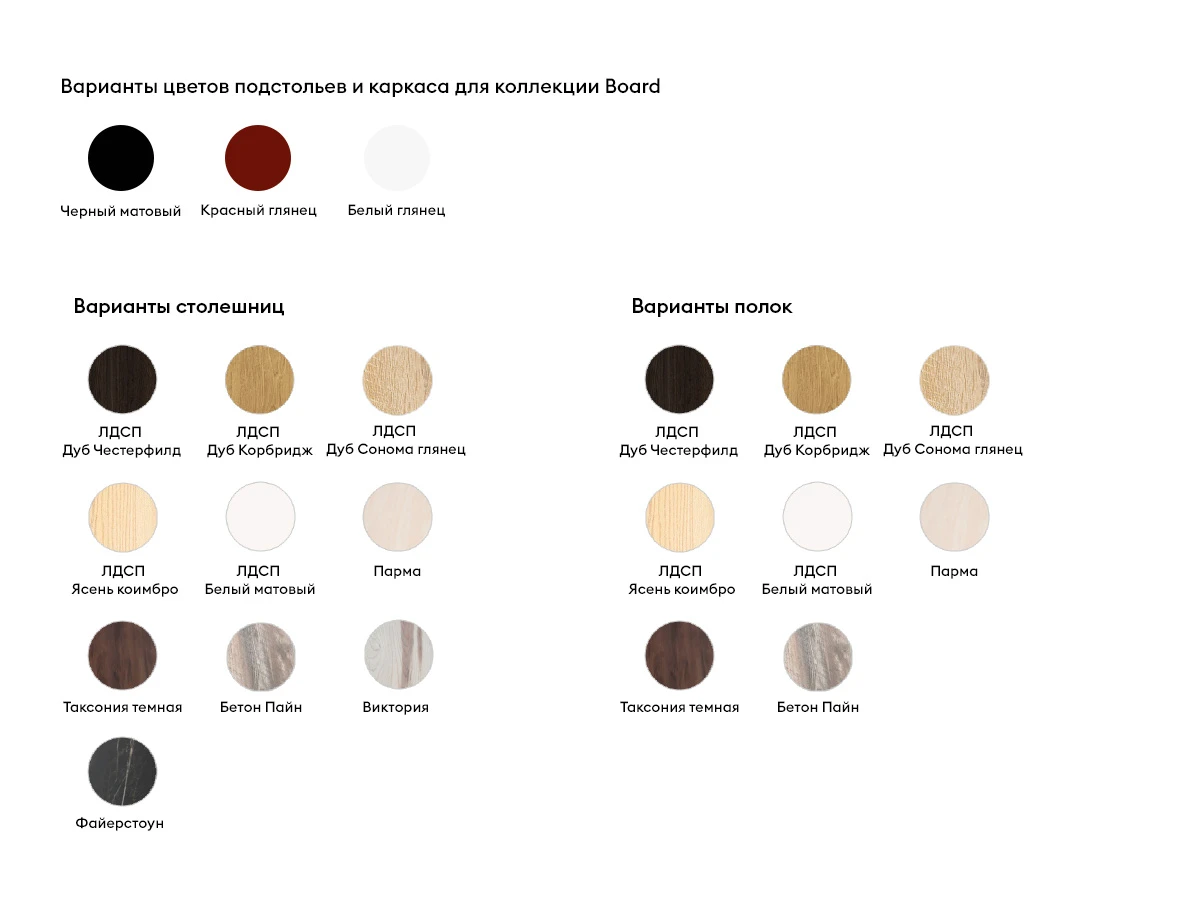 Коллекция Board — мебель для рабочих и учебных зон с индустриальным характером. Лаконичная, практичная и вариативная. Для офиса на дому или в общественной локации, для школьника, студента, творческих и мастерских — многофункциональные столы со встроенными тумбами и стеллажами помогут создать упорядоченное, рационально организованное рабочее место. Идеально, когда: важные вещи, документы — на расстоянии вытянутой руки, а на поиски нужного уходит не более 2 минут, нет лишних визуальных раздражителей, за каждым предметом закреплено место.
