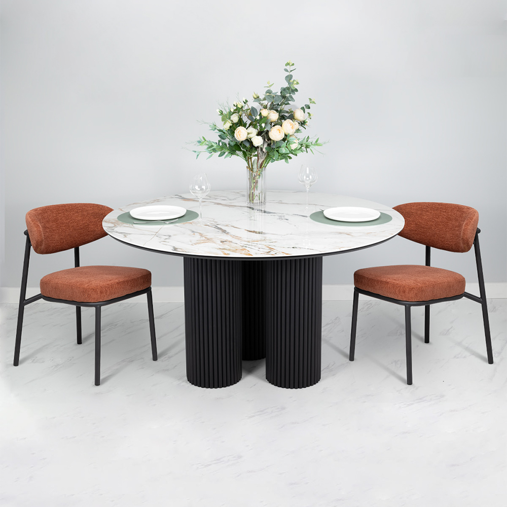 Элегантная круглая опора: металлическая основа белого цвета придает столу стабильность и стильный современный вид, идеально гармонируя с мраморной столешницей.