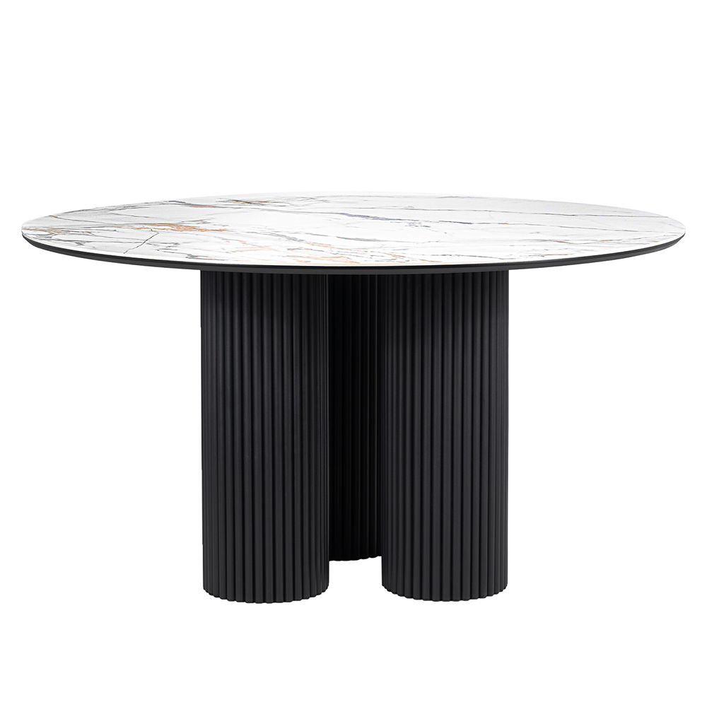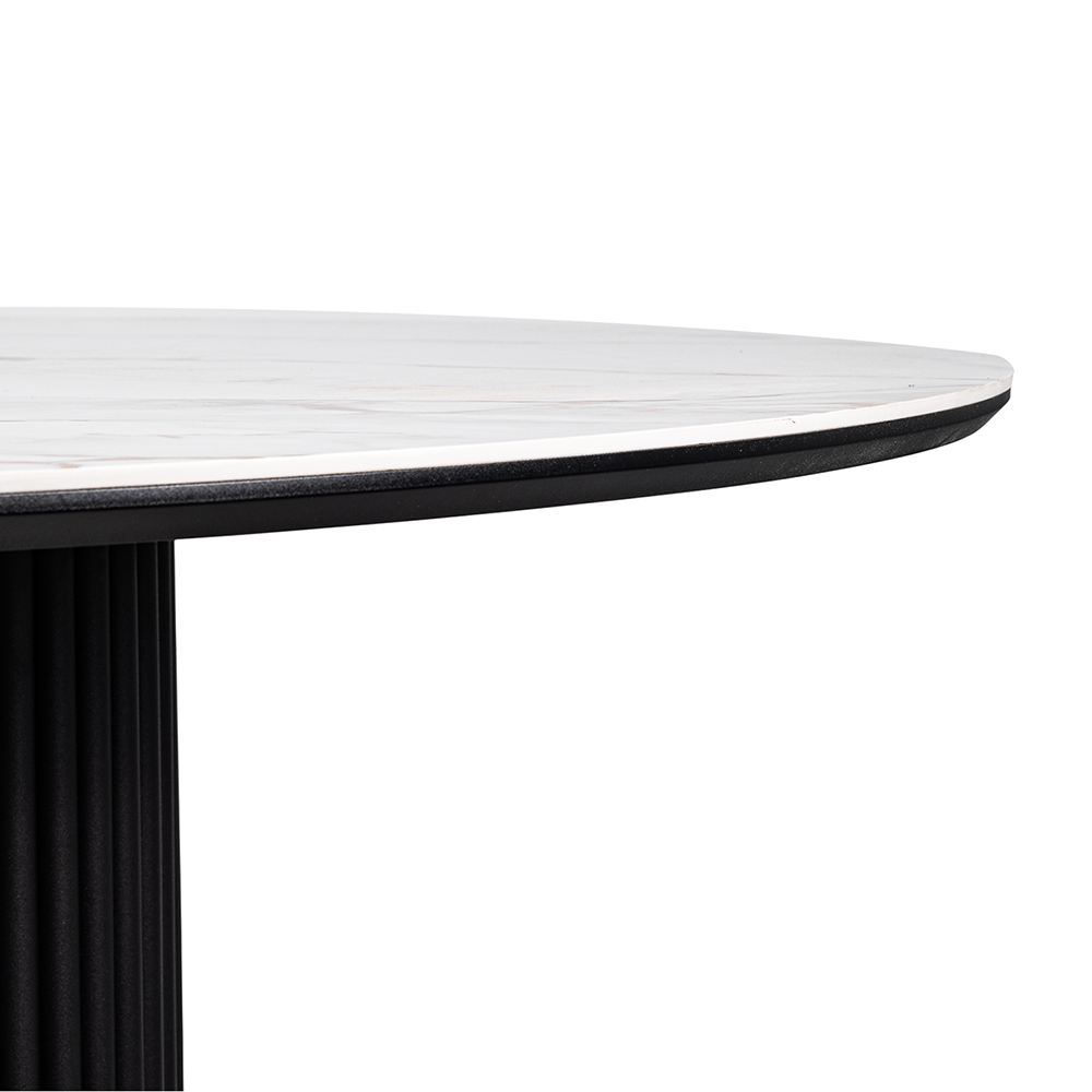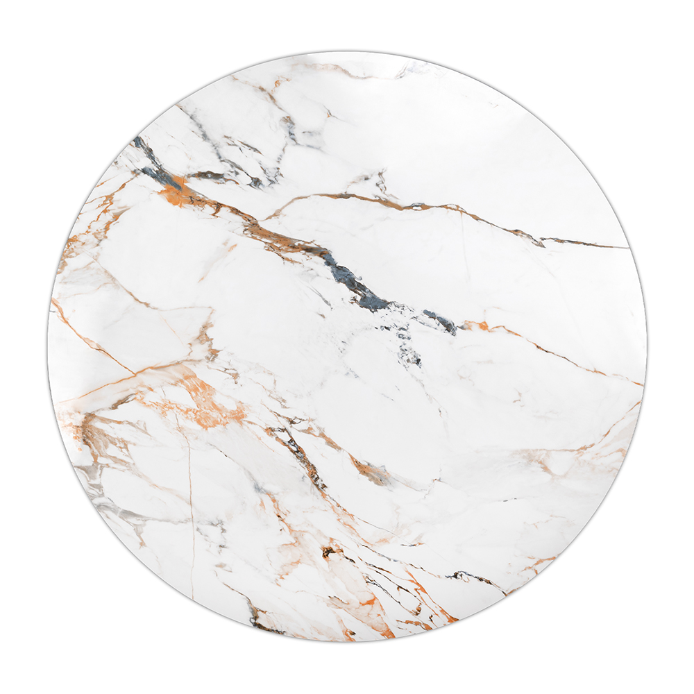 Стильный нераздвижной стол Aura – идеальное сочетание элегантности и функциональности. Стол Aura обладает глянцевой премиальной круглой столешницей из керамики, имитирующей белый мрамор, диаметром 110 см.