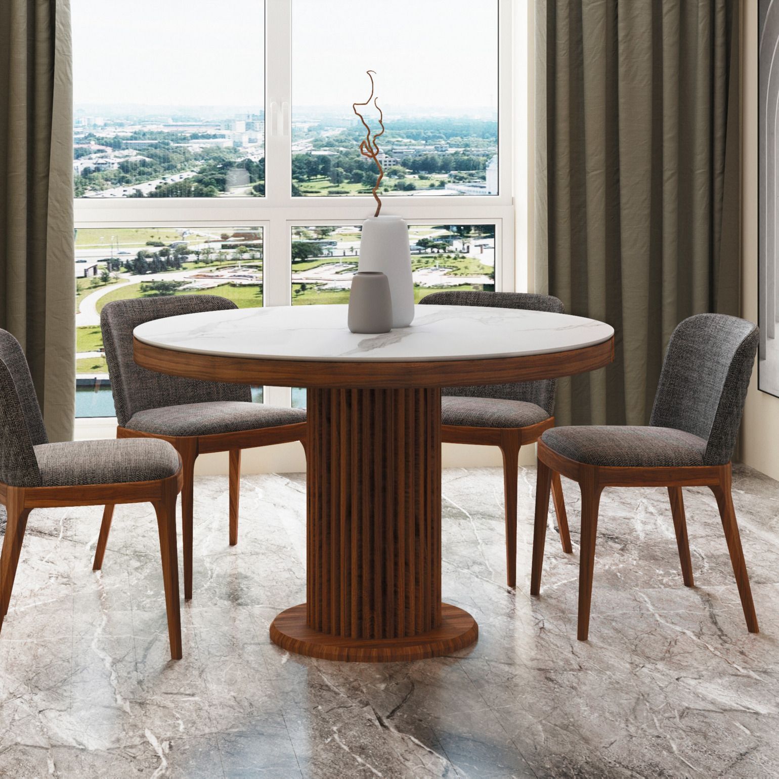 Стол Denver – стильное и практичное решение для вашего интерьера. Он сочетает в себе изысканный дизайн, функциональность и долговечность – идеальный выбор для тех, кто ценит комфорт и стиль. h3Столешница/h3 Стол Denver оснащен круглой нераскладывающейся столешницей, выполненной из матовой керамики толщиной 6 мм, что обеспечивает прочность и устойчивость к царапинам и пятнам. h3Опора/h3 Опора стола выполнена из МДФ, покрытого натуральным шпоном, что добавляет изделию элегантности и гармонично вписывается в современные и классические интерьеры.