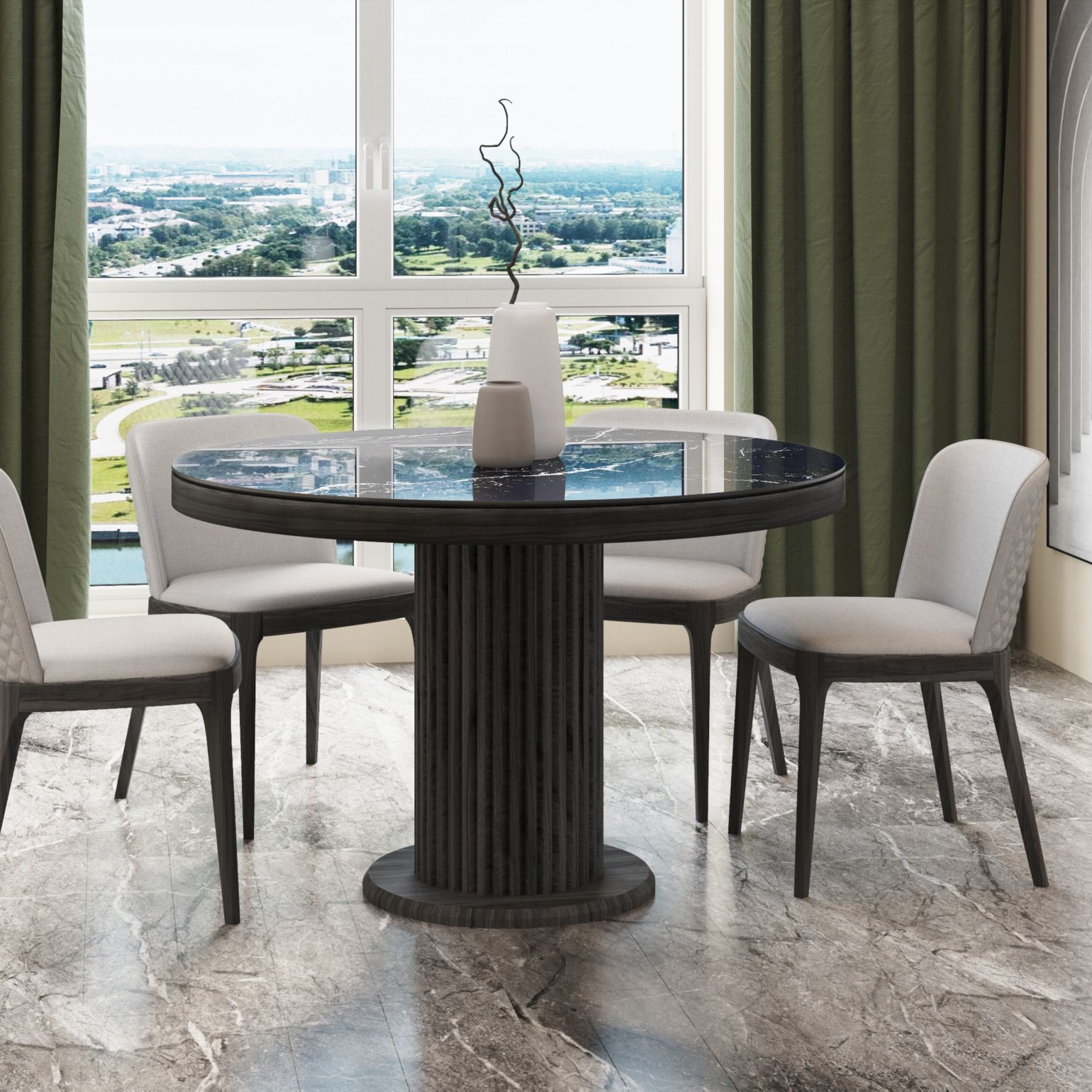 Стол Denver оснащен круглой нераскладывающейся столешницей, выполненной из глянцевой керамики толщиной 6 мм, что обеспечивает прочность и устойчивость к царапинам и пятнам.