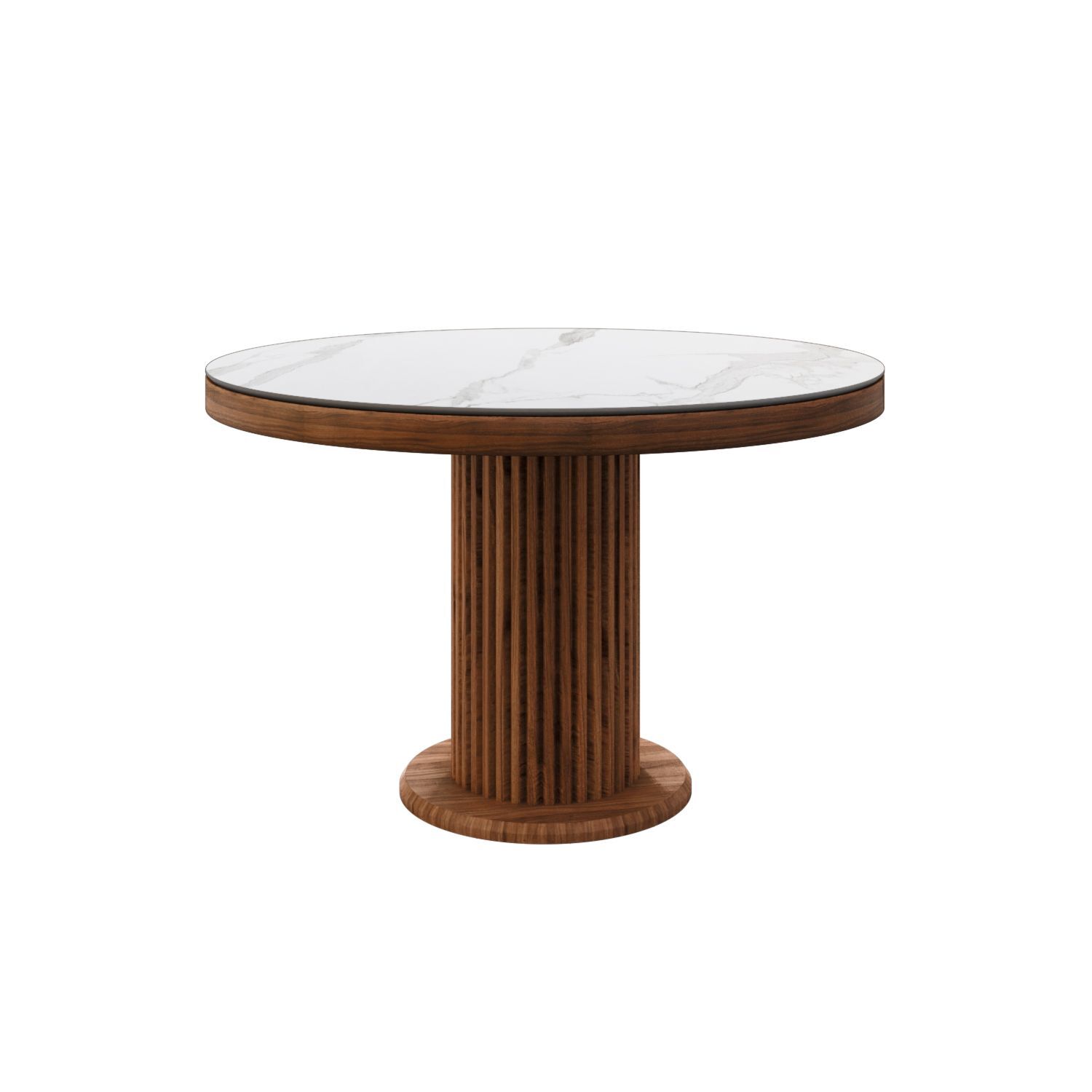 Стол Denver – стильное и практичное решение для вашего интерьера. Он сочетает в себе изысканный дизайн, функциональность и долговечность – идеальный выбор для тех, кто ценит комфорт и стиль. h3Столешница/h3 Стол Denver оснащен круглой нераскладывающейся столешницей, выполненной из матовой керамики толщиной 6 мм, что обеспечивает прочность и устойчивость к царапинам и пятнам. h3Опора/h3 Опора стола выполнена из МДФ, покрытого натуральным шпоном, что добавляет изделию элегантности и гармонично вписывается в современные и классические интерьеры.