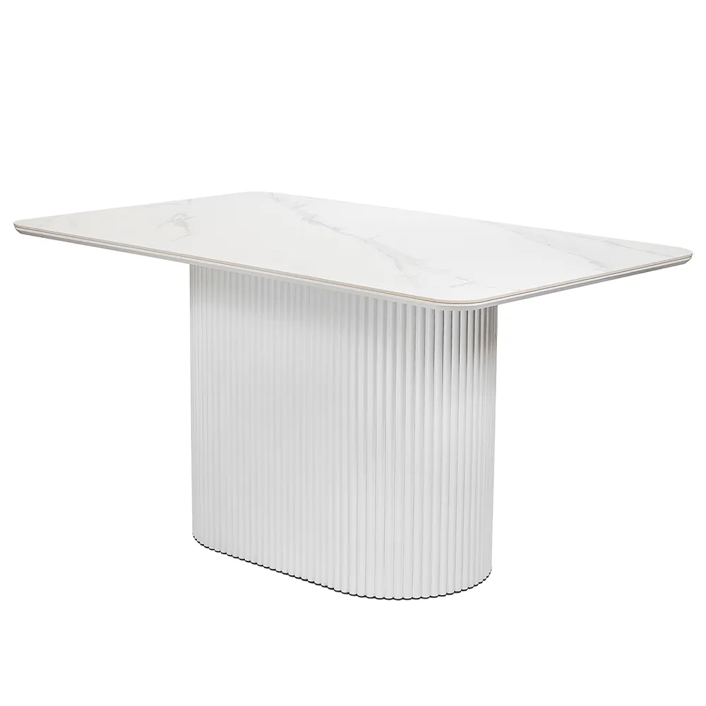 Элегантная овальная опора: металлическая основа белого цвета придает столу стабильность и стильный современный вид, идеально гармонируя с мраморной столешницей.