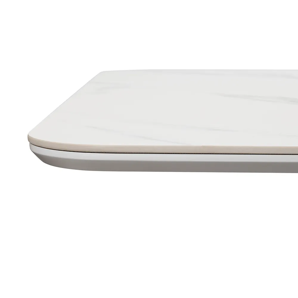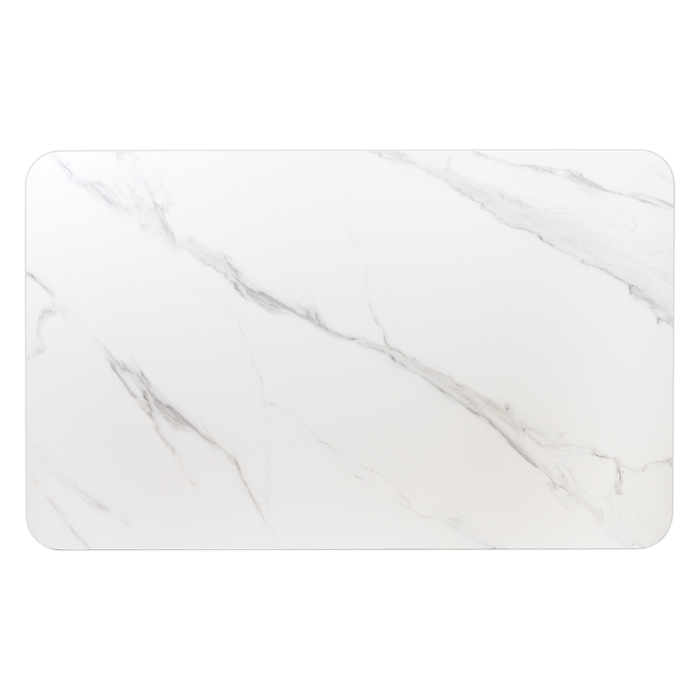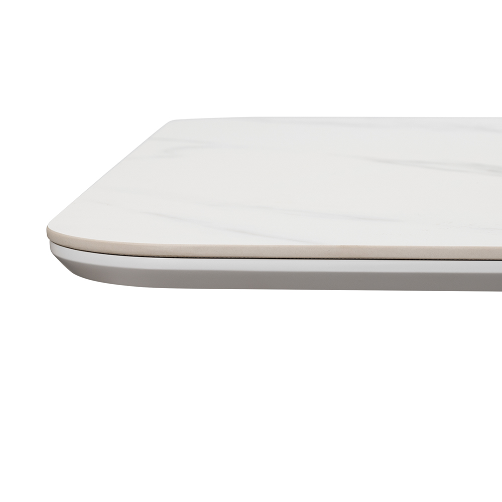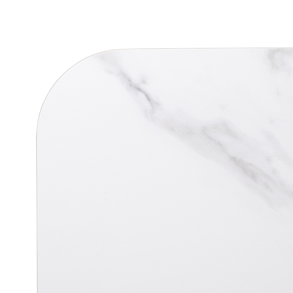 Высококачественная керамическая столешница: стол Festa обладает матовой премиальной столешницей из керамогранита White Stone, имитирующей белый мрамор. Поверхность размером 1600х900 мм со скошенной кромкой не царапается, не впитывает жидкость и легко моется, что обеспечивает долгий срок службы и минимальный уход.