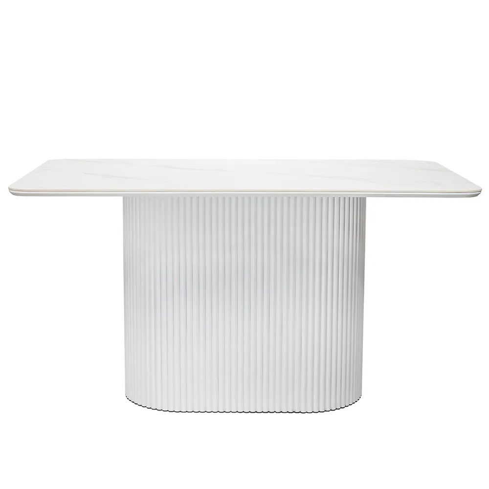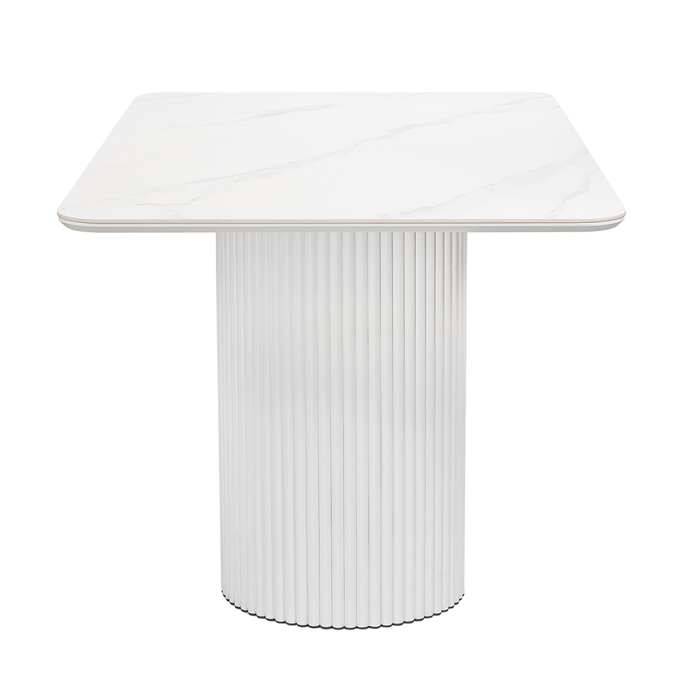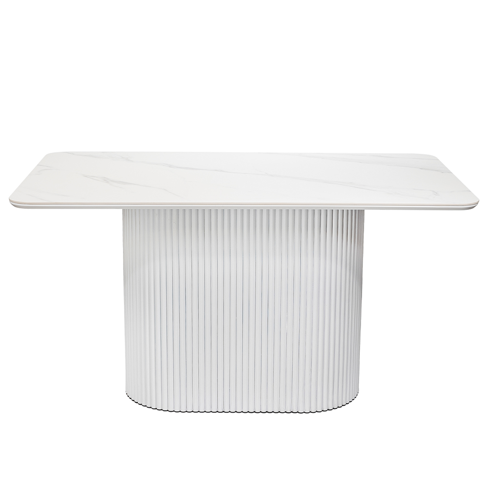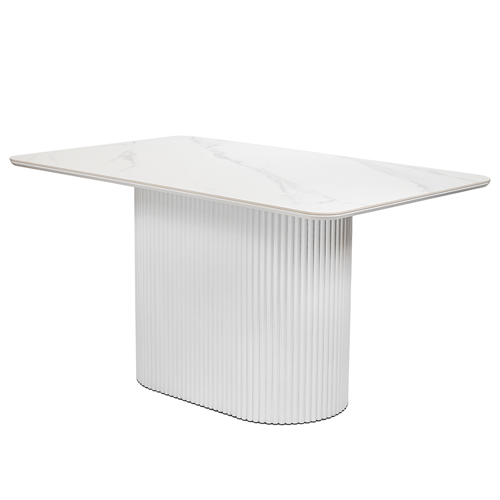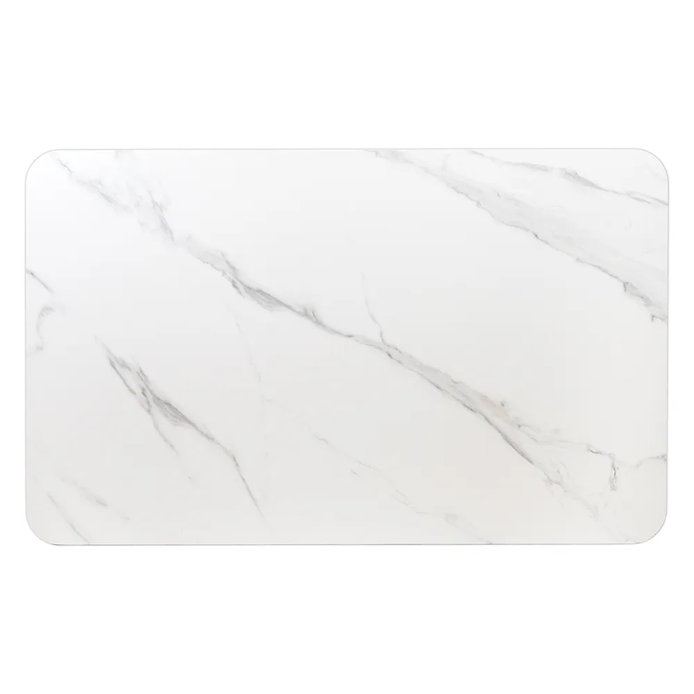 Высококачественная керамическая столешница: стол Festa обладает матовой премиальной столешницей из керамогранита White Stone, имитирующей белый мрамор. Поверхность размером 1600х900 мм со скошенной кромкой не царапается, не впитывает жидкость и легко моется, что обеспечивает долгий срок службы и минимальный уход.