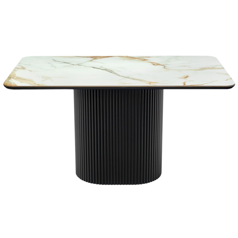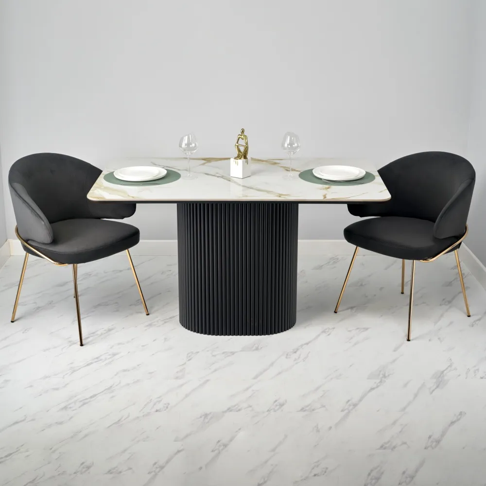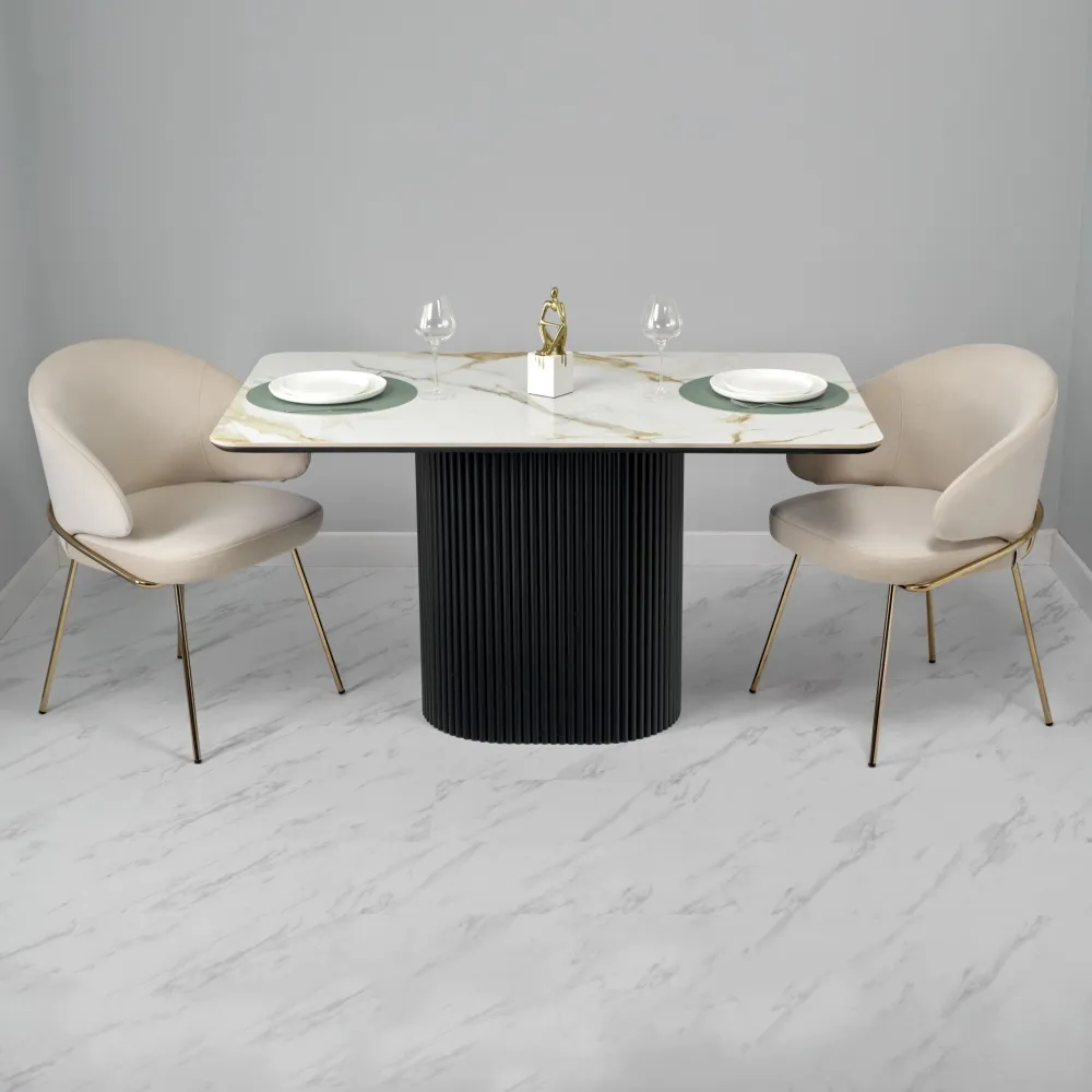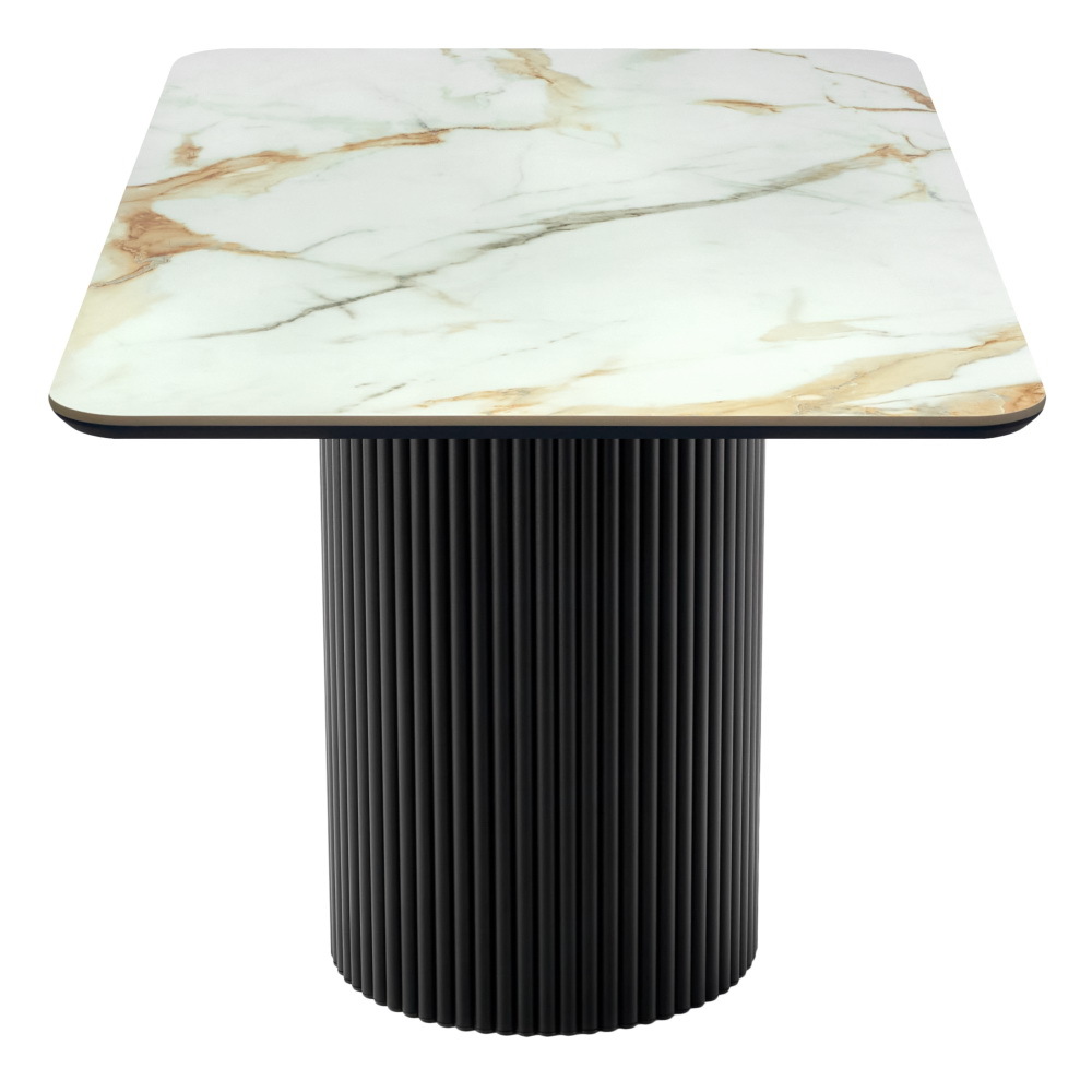Высококачественная керамическая столешница: стол Festa обладает глянцевой премиальной столешницей из керамогранита Calacatte gold, имитирующей белый мрамор. Поверхность размером 1400х850 мм со скошенной кромкой не царапается, не впитывает жидкость и легко моется, что обеспечивает долгий срок службы и минимальный уход.