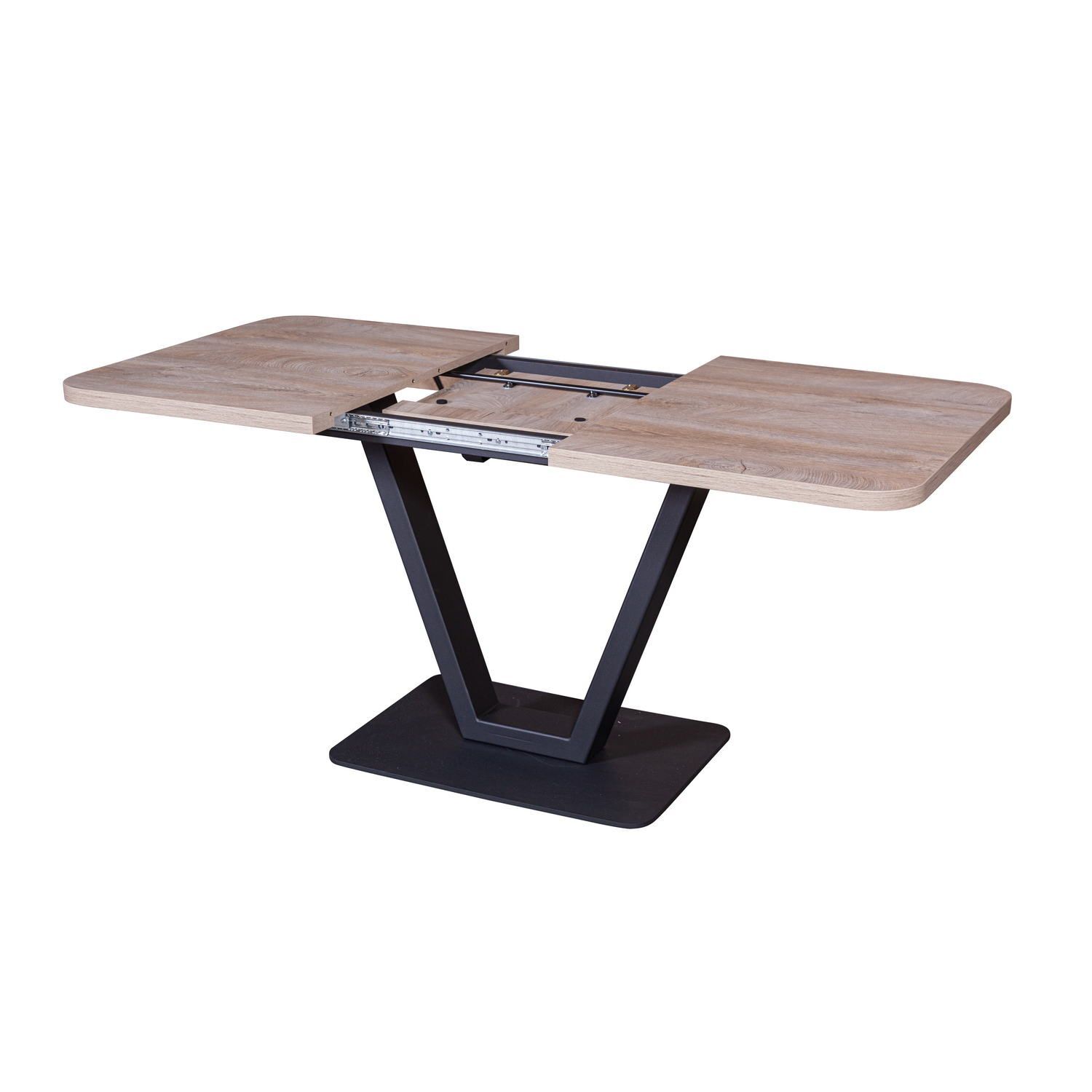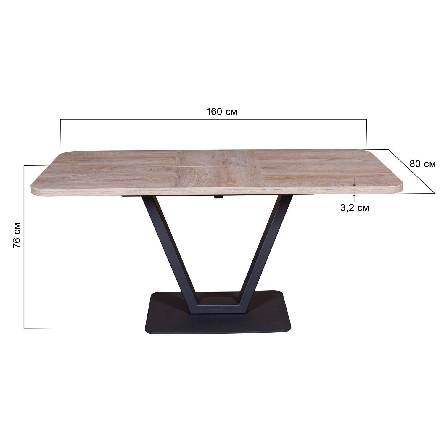 Обеденный стол Forward (Форвард) отличается практичностью и эстетичностью. Модель-трансформер позволит разместить за уютным столом всех желающих и сэкономить пространство. ОПОРЫ Металлические опоры в цвете "черный муар" выполнены из прочного стального профиля. Полимерное порошковое покрытие опор обеспечивает продолжительный срок службы. На опорах предусмотрены защитные пластиковые накладки, которые придают дополнительную устойчивость и защищают пол от царапин. Накладки полностью выкручиваются, благодаря чему можно отрегулировать положение стола в идеально ровном положении, даже на полу с неровной поверхностью. МЕХАНИЗМ ТРАНСФОРМАЦИИ Надежный металлический механизм трансформации оснащен синхронизатором, благодаря которому стол раскладывается плавно и легко. Фиксатор, находящийся на подстолье, исключает самопроизвольную трансформацию механизма при эксплуатации. СТОЛЕШНИЦА Столешница выполнена из ЛДСП толщиной 32 мм. Материал устойчив к бытовым царапинам, обладает высокой ударопрочностью, легкий в уходе, долговечный и практичный. Толщина кромки - 2 мм.