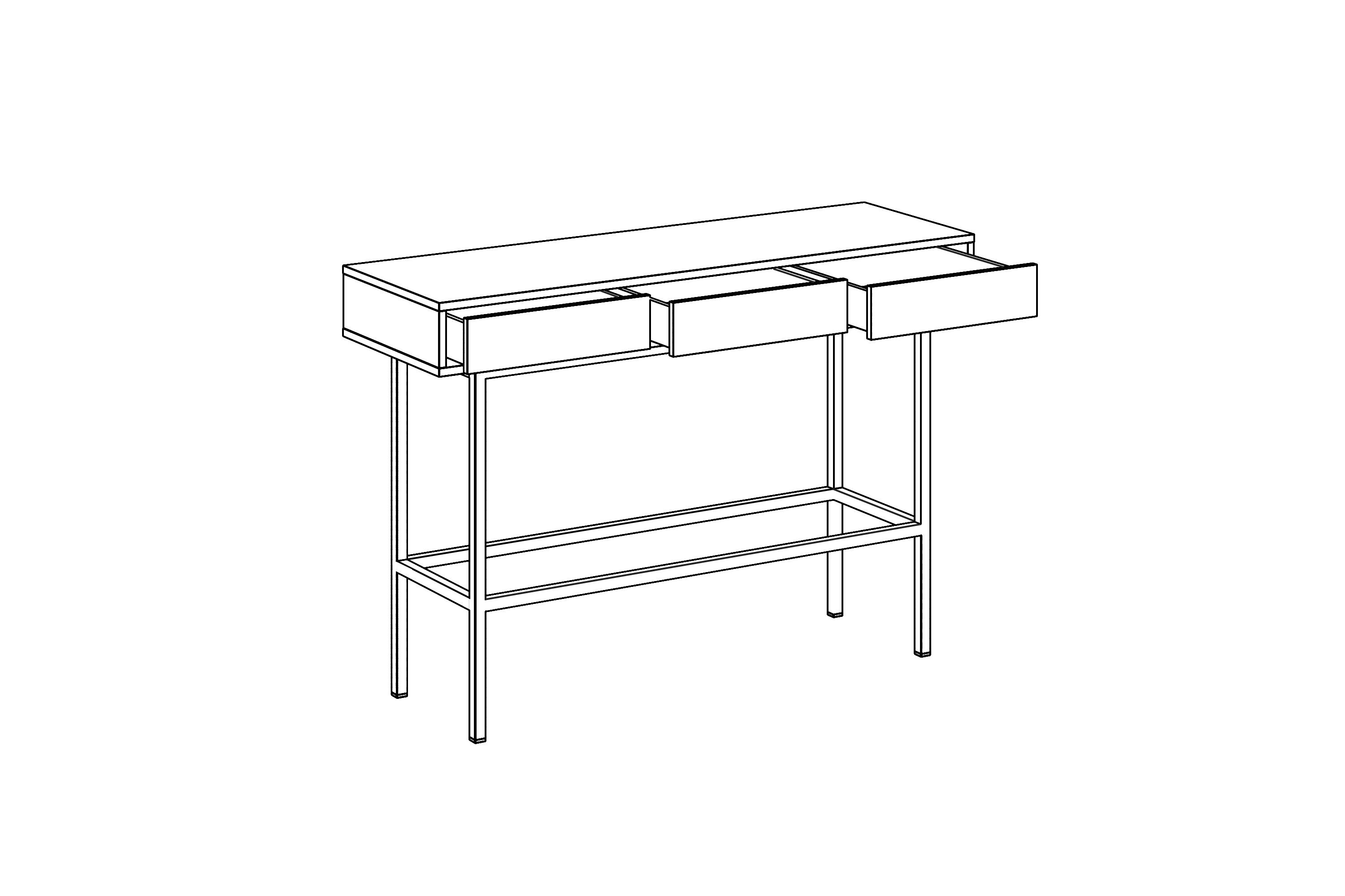 Корпус консоли изготовлен из ЛДСП 16 мм. и установлен на металлическое основание, выполненное из трубы сечением 20х20 мм, черного цвет. Высота основания 715 мм.. Наличие пластиковых подпятников.