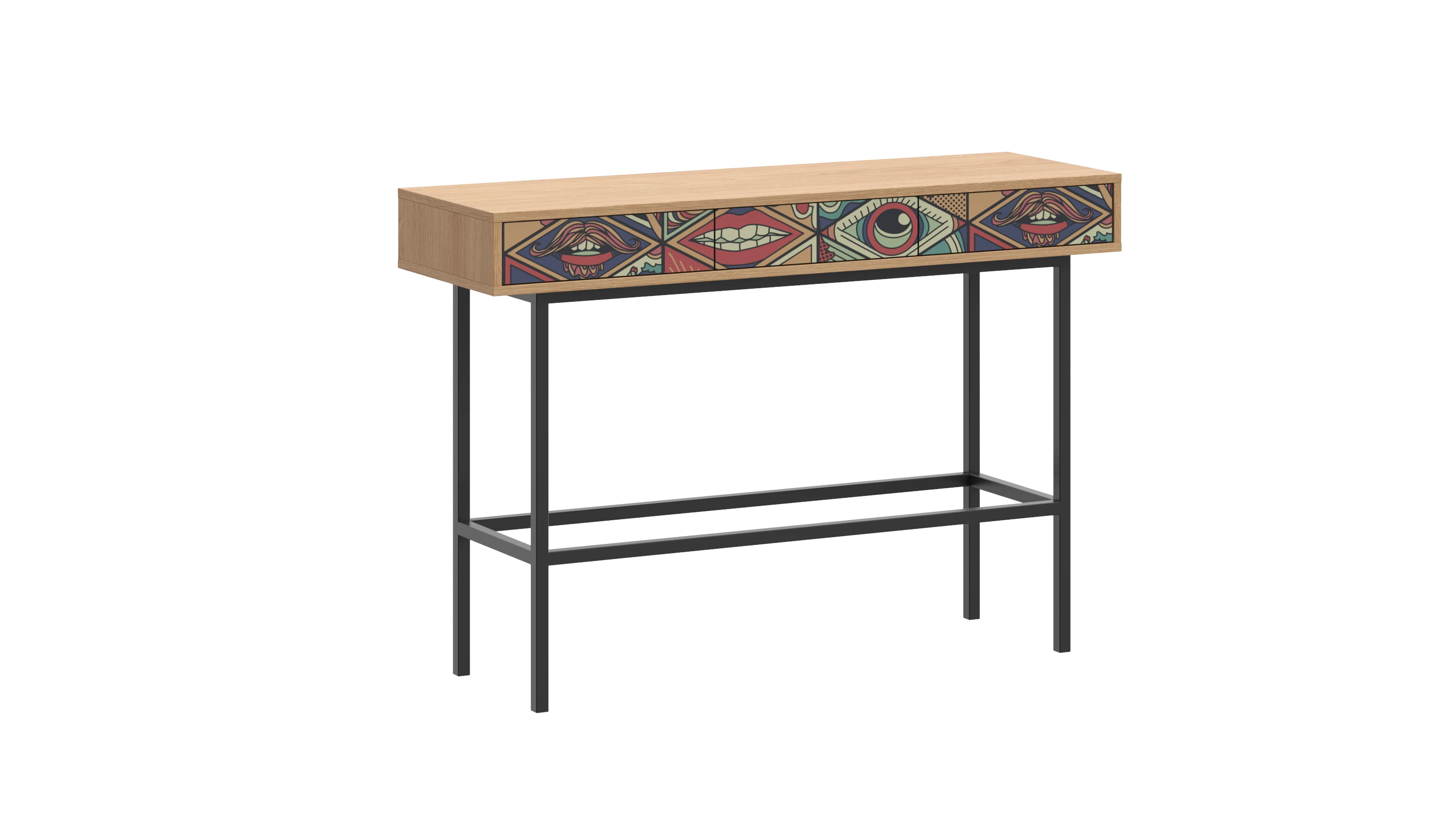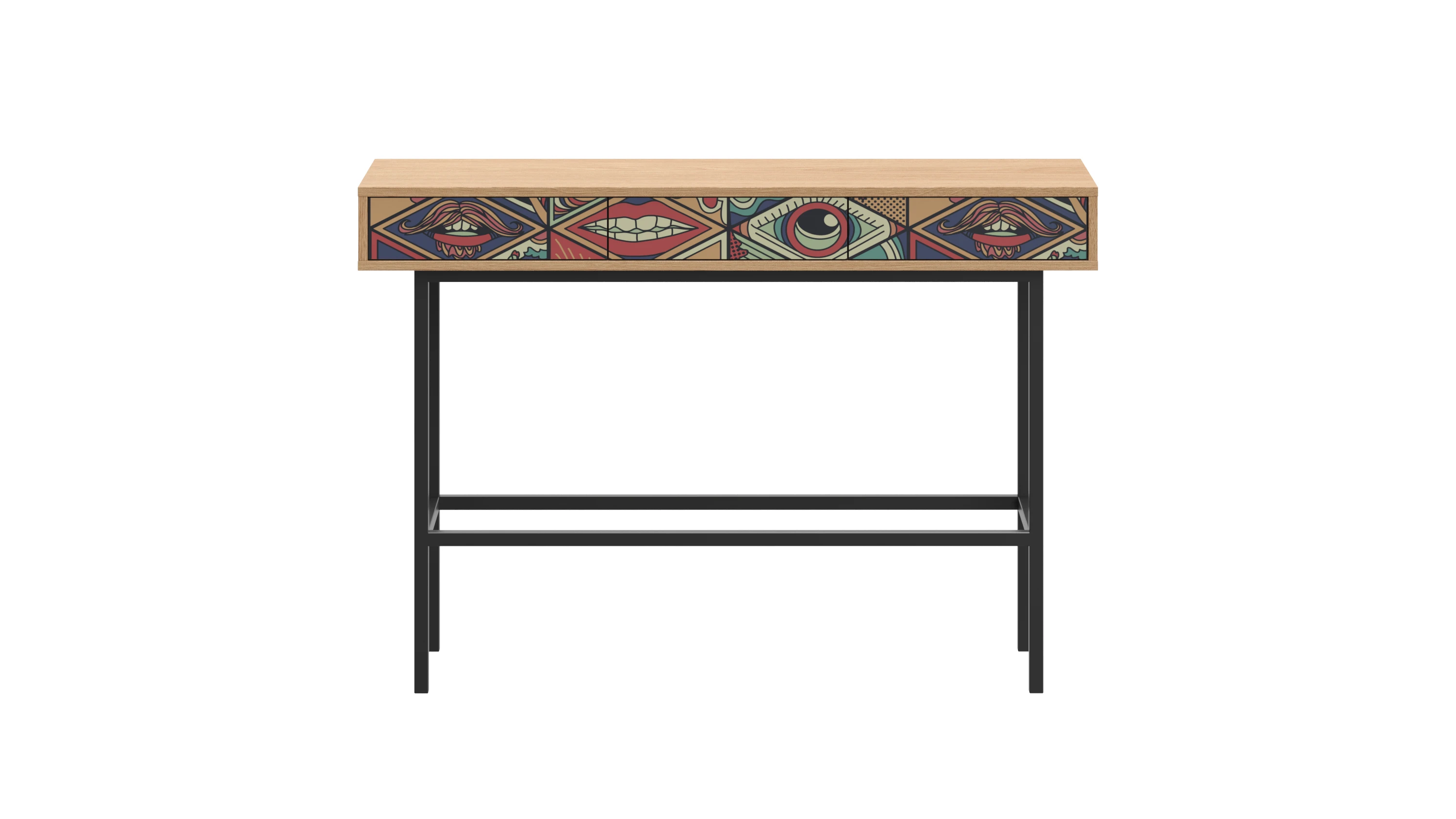 Корпус консоли изготовлен из ЛДСП 16 мм. и установлен на металлическое основание, выполненное из трубы сечением 20х20 мм, черного цвет. Высота основания 715 мм.. Наличие пластиковых подпятников.