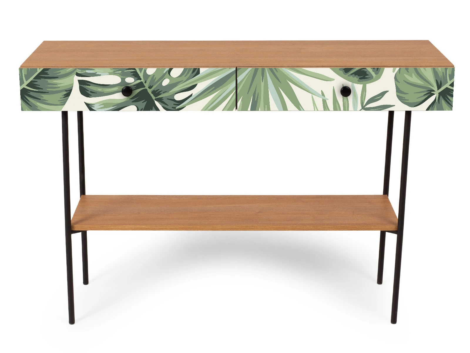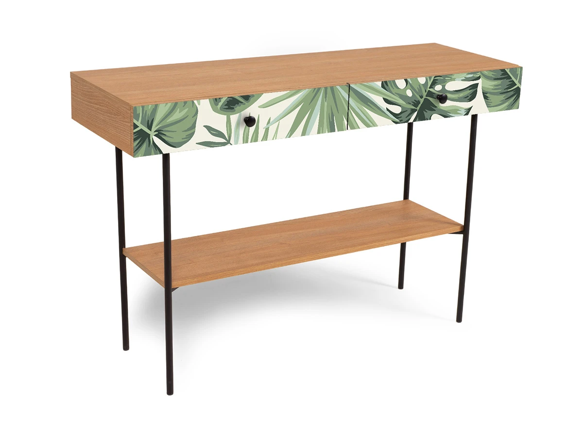 Фасад - принт Monstera/Робиния Брэнсон, Ручки - Черный матовый, Корпус - Робиния Брэнсон