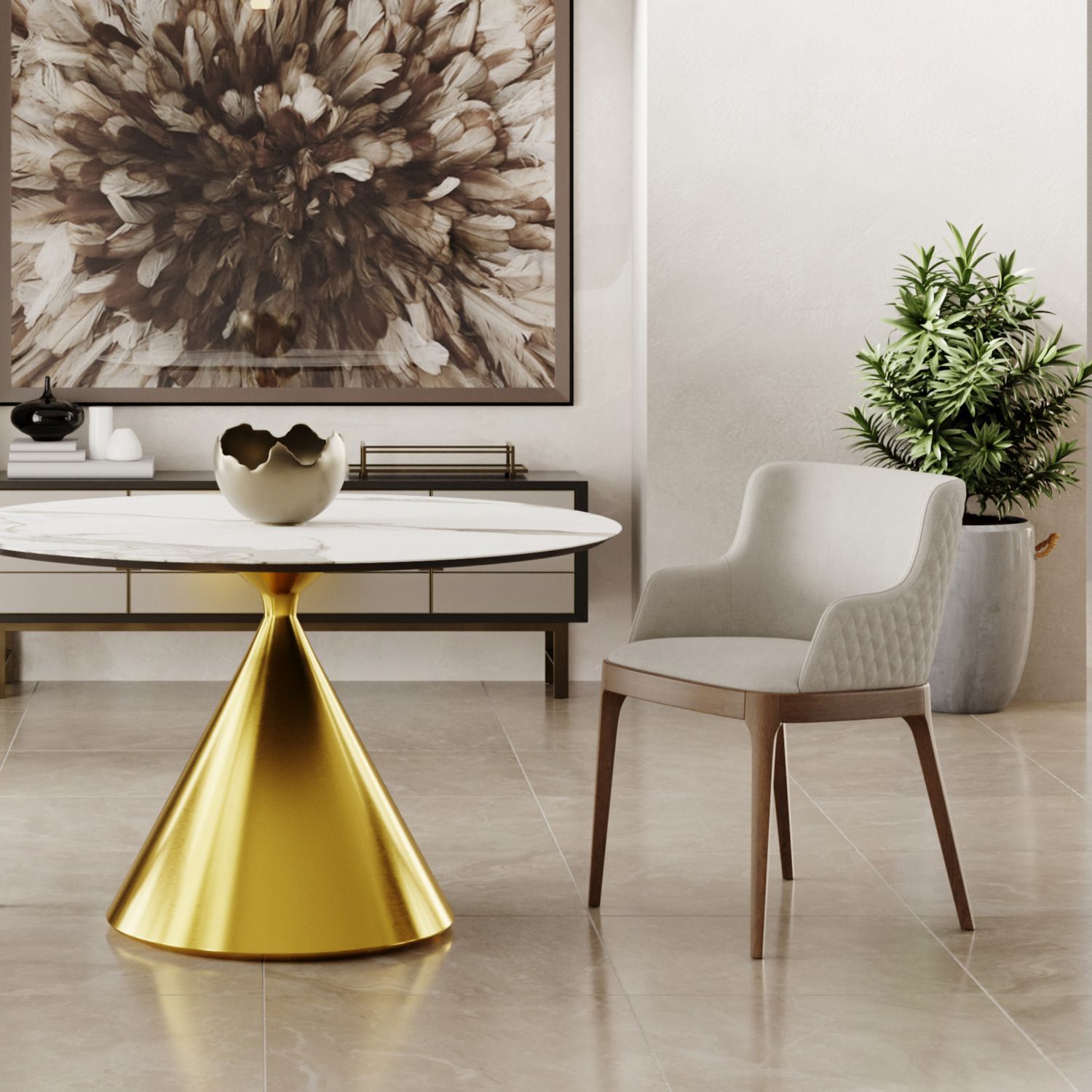 Стол круглый AXIS 120, керамика матовая, белая / опора золото