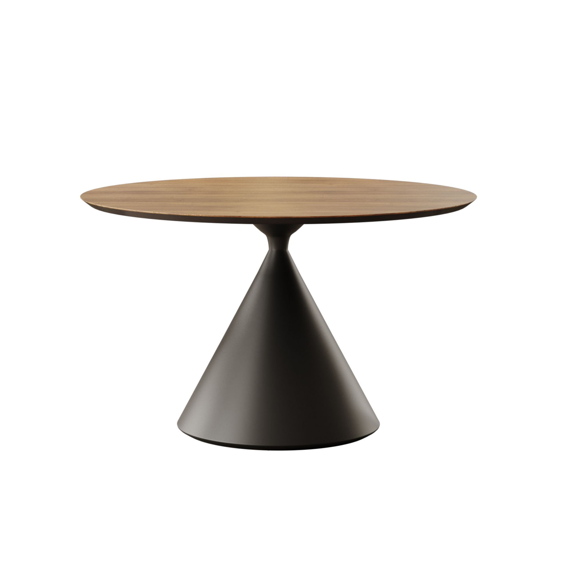 Круглый стол AXIS идеально подходит для создания уютной обеденной зоны в вашем доме или ресторане. Его дизайн и функциональность обеспечивают комфортное пространство для обеденной зоны и встреч с друзьями. Благодаря надежным материалам и качественной конструкции, этот стол будет служить вам долгое время и радовать вас своей эстетической привлекательностью. Стол с круглой столешницей AXIS не раскладывающийся, МДФ 24 мм с натуральным шпоном 1 мм. Опора стола выполнена в форме конуса и изготовлена из прочного металла. Цвет опоры - черный, что придает столу современный и стильный вид. Черный цвет добавляет элегантности и характера столу, при этом легко сочетается с различными интерьерными стилями.
