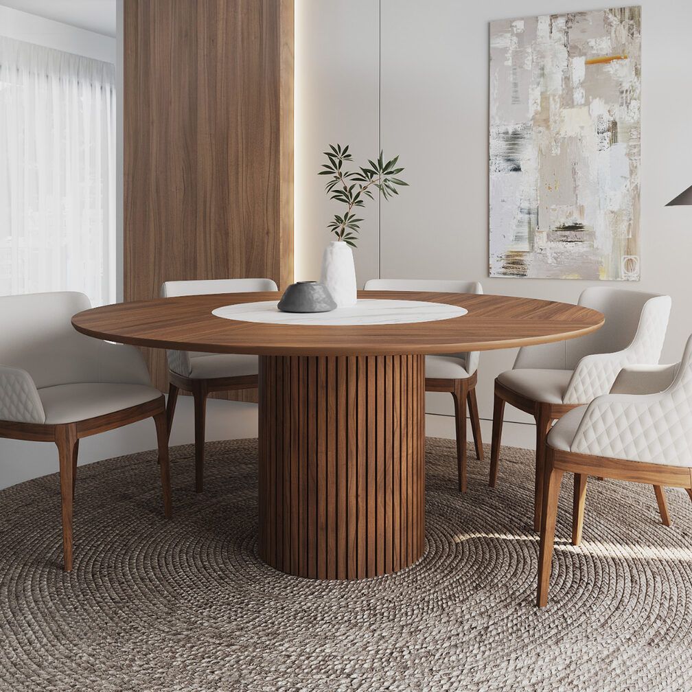 Стол Denver – стильное и практичное решение для вашего интерьера. Он сочетает в себе изысканный дизайн, функциональность и долговечность – идеальный выбор для тех, кто ценит комфорт и стиль. h3Столешница/h3 Стол Denver оснащен круглой нераскладывающейся столешницей, выполненной из шпона с круглой вставкой из матовой керамики. h3Опора/h3 Опора стола выполнена из МДФ, покрытого натуральным шпоном, что добавляет изделию элегантности и гармонично вписывается в современные и классические интерьеры.