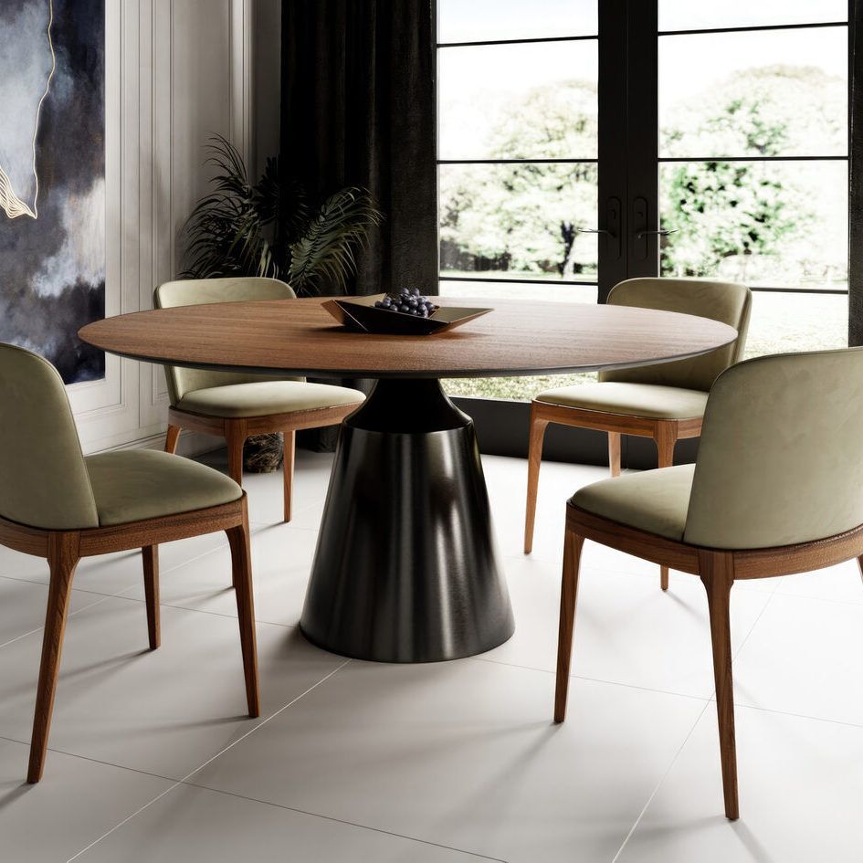 Коллекция включает круглый, овальный, прямоугольный керамический стол Lucas с матовым или глянцевым покрытием и версию со столешницей из шпона.
