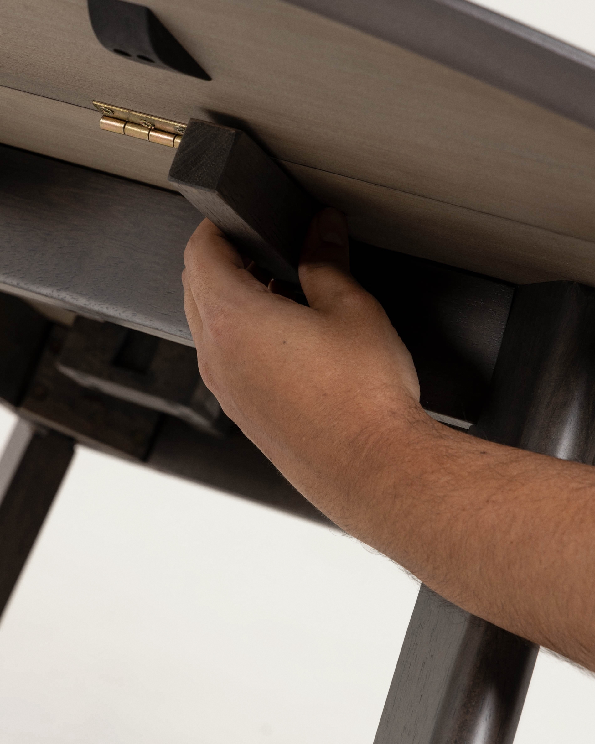 Чтобы разложить стол, нужно поднять сектор и подпереть его снизу двумя деревянными брусками.