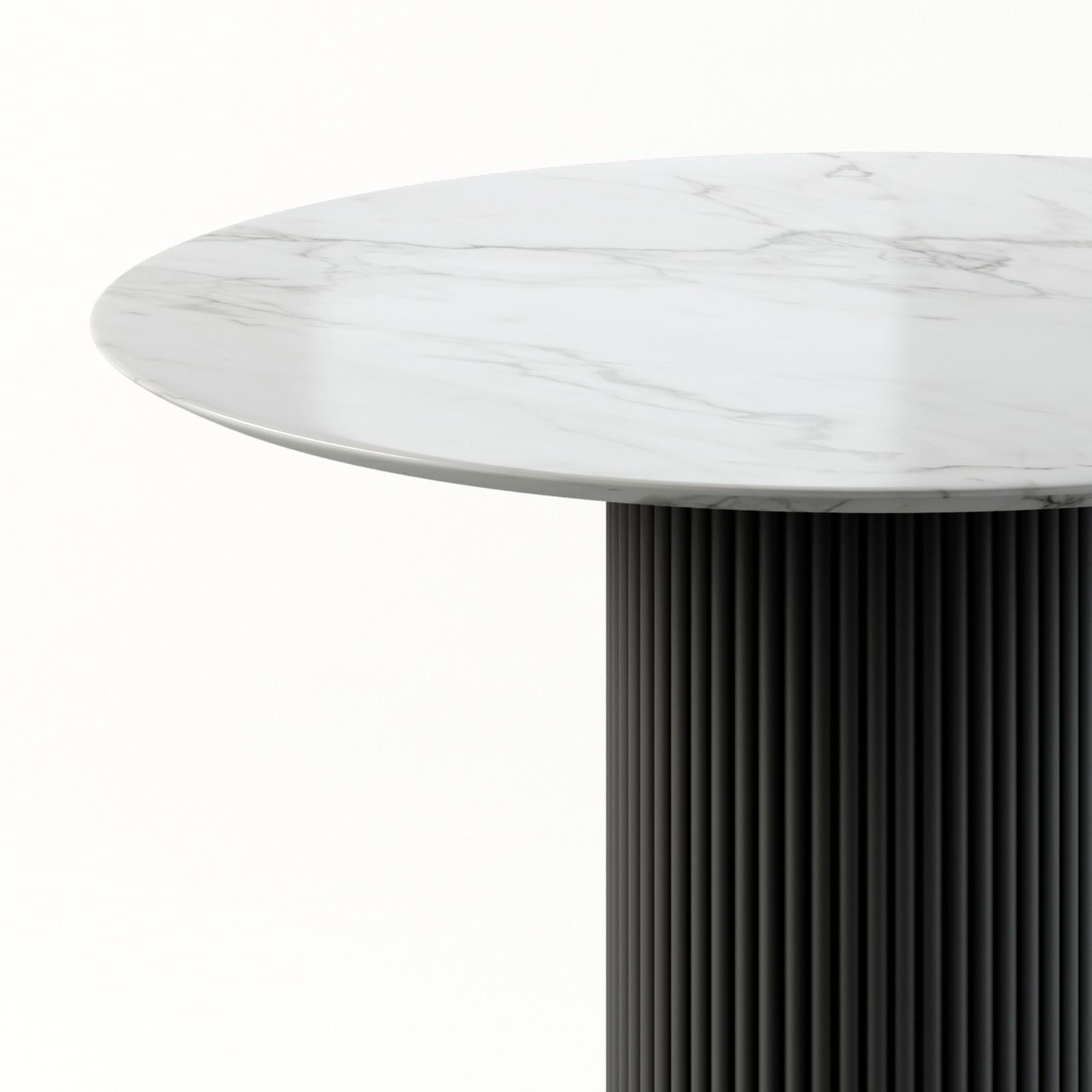 Стол "Nolan" — стильная и изысканная модель с круглой столешницей из керамики, основанием из металла. Стол "Nolan" с металлической опорой в черном цвете и столешницей из керамики звучит элегантно и современно. Черная металлическая опора придает столу сдержанный и стильный вид, что делает его хорошим выбором для различных интерьеров, особенно в современных и индустриальных стилях. В целом, такой дизайн стола "Nolan" сочетает в себе современные и натуральные элементы, что позволяет ему органично вписаться в разнообразные интерьеры и стать стильным акцентом в комнате.