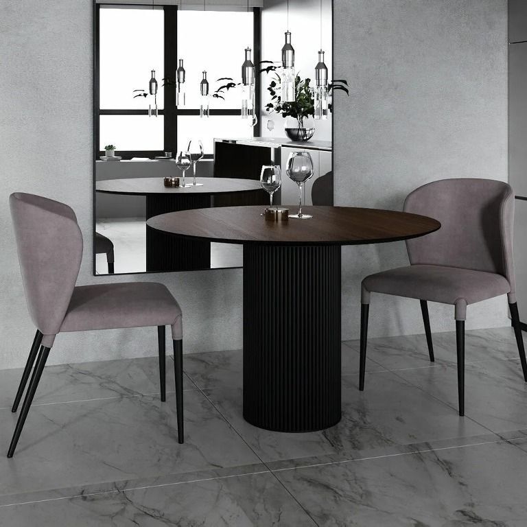 Стол "Nolan" с металлической опорой в черном цвете и столешницей из керамики звучит элегантно и современно. Черная металлическая опора придает столу сдержанный и стильный вид, что делает его хорошим выбором для различных интерьеров, особенно в современных и индустриальных стилях. В целом, такой дизайн стола "Nolan" сочетает в себе современные и натуральные элементы, что позволяет ему органично вписаться в разнообразные интерьеры и стать стильным акцентом в комнате.