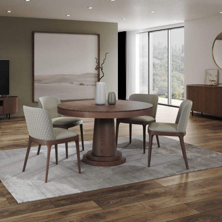 Стол с круглой столешницей, раскладывающийся от 1000 до 1400 мм, представляет собой элегантное и удобное решение для обеденной зоны. Столешница выполнена из шпона толщиной 1 мм, что придает ей стильный и современный вид. Благодаря возможности раскладывания, этот стол идеально подойдет как для небольших, так и для просторных помещений, позволяя удобно разместить большее количество гостей.