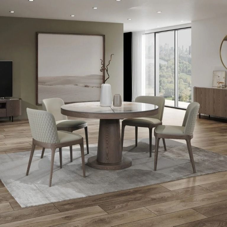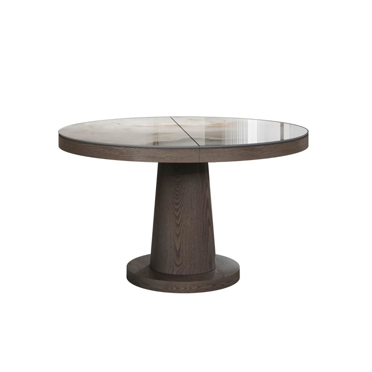 Стол с круглой столешницей, раскладывающийся от 1200 до 1600 мм, представляет собой элегантное и удобное решение для обеденной зоны. Столешница выполнена из глянцевой керамики толщиной 6 мм, что придает ей стильный и современный вид. Благодаря возможности раскладывания, этот стол идеально подойдет как для небольших, так и для просторных помещений, позволяя удобно разместить большее количество гостей.