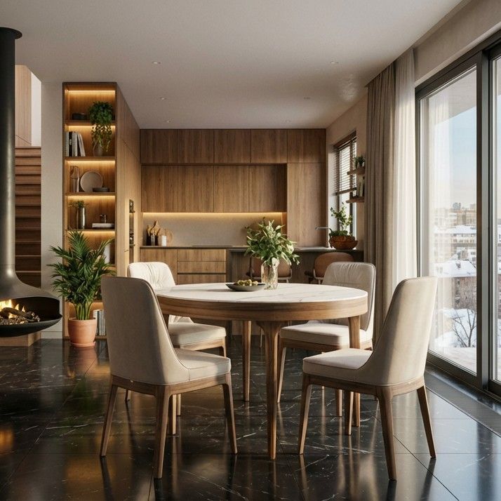 Стол с круглой столешницей, раскладывающийся от 110 до 150 cм, представляет собой элегантное и удобное решение для обеденной зоны. Столешница выполнена из матовой или глянцевой керамики , что придает ей стильный и современный вид. Благодаря возможности раскладывания, этот стол идеально подойдет как для небольших, так и для просторных помещений, позволяя удобно разместить большее количество гостей. Опора стола выполнена из МДФ с натуральным шпоном, что придает конструкции прочность и устойчивость. Кроме того, комбинация материалов добавляет столу изысканный и элегантный вид. Этот стол сочетает в себе функциональность, качество материалов и стильный дизайн, что делает его идеальным выбором для обеденной зоны вашего дома или кафе. Он станет уютным и привлекательным акцентом в любом интерьере.