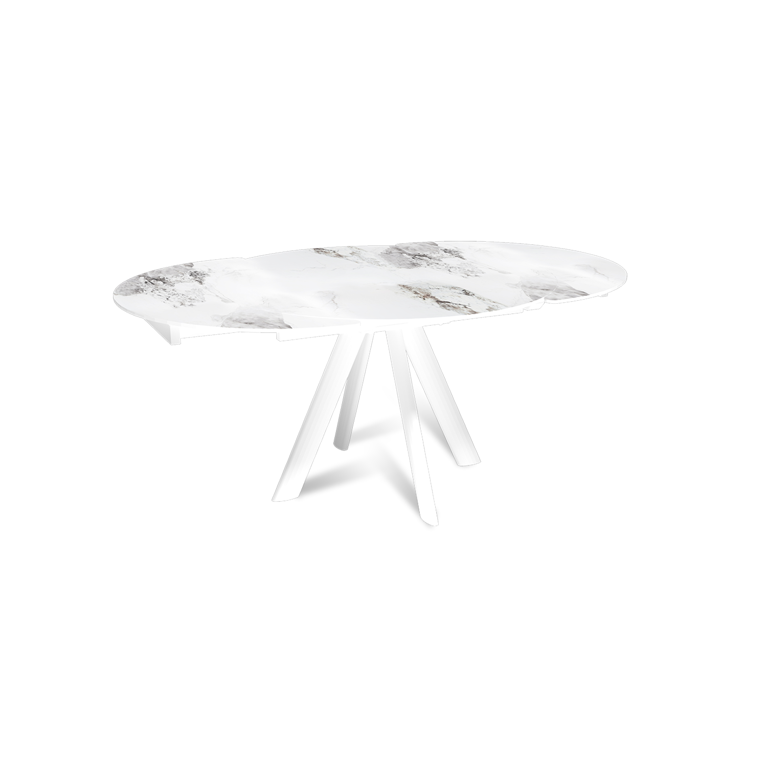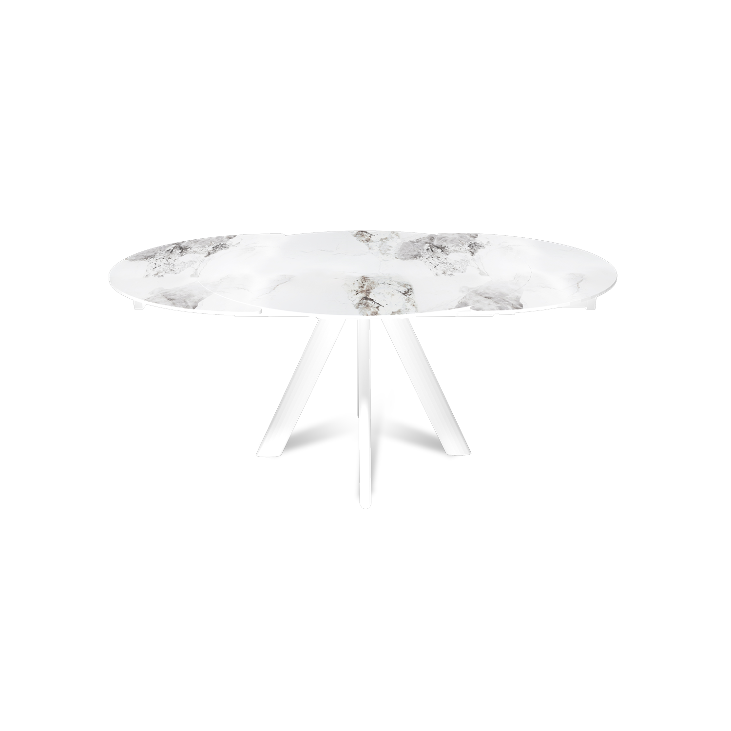 Стол ORION сочетает эффектную керамическую столешницу и стильное металлическое основание, создавая гармоничный образ. Четыре опоры расходятся из центра, придавая конструкции легкость и устойчивость.