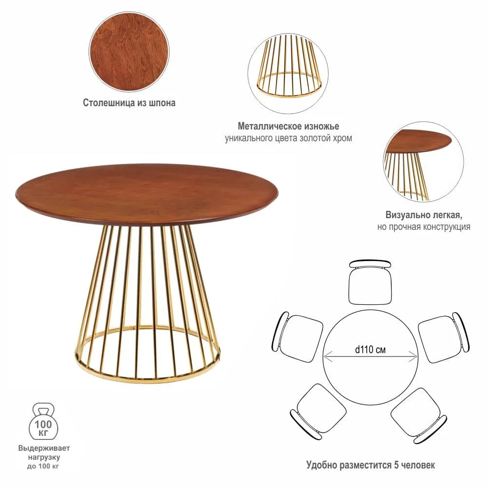 Стол Liverpool, со столешницей, выполненной в роскошном оттенке "орех", с золотистыми ножками идеально впишется в любой современный интерьер. Этот незаменимый и функциональный предмет мебели придется по вкусу не только людям творческим, поклонникам ультрамодных стилей винтаж или лофт, но и более сдержанным натурам, предпочитающим лаконичность и минимализм. Стол Liverpool имеет удобную высоту и способен выдерживать нагрузку до 100 килограммов.