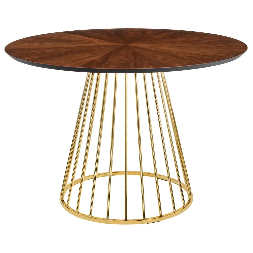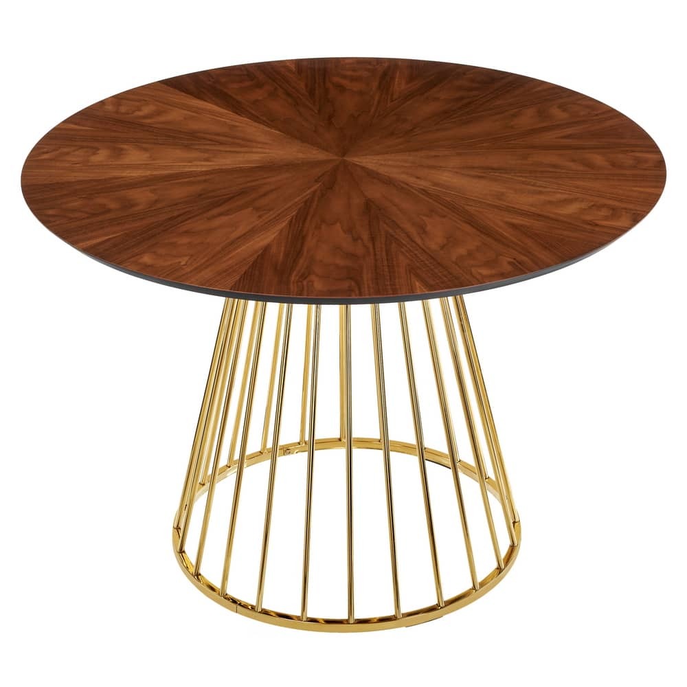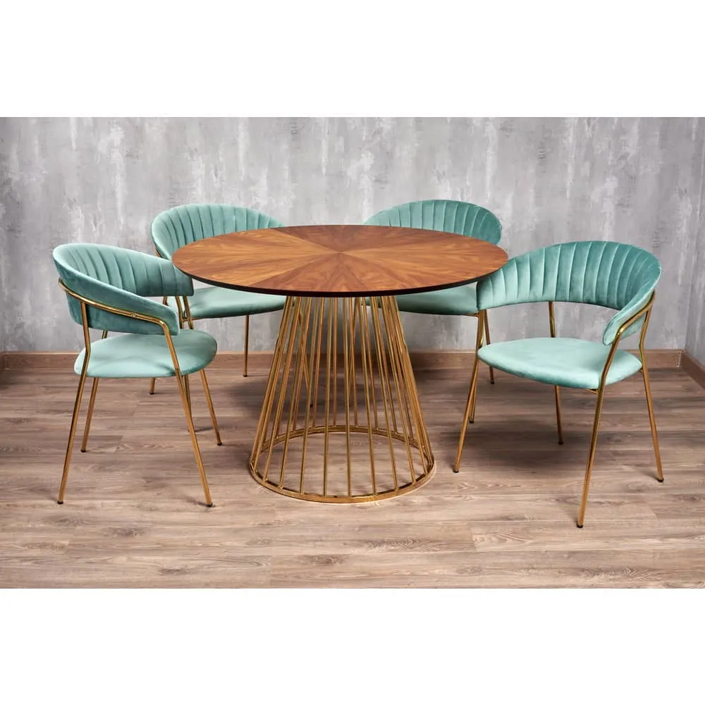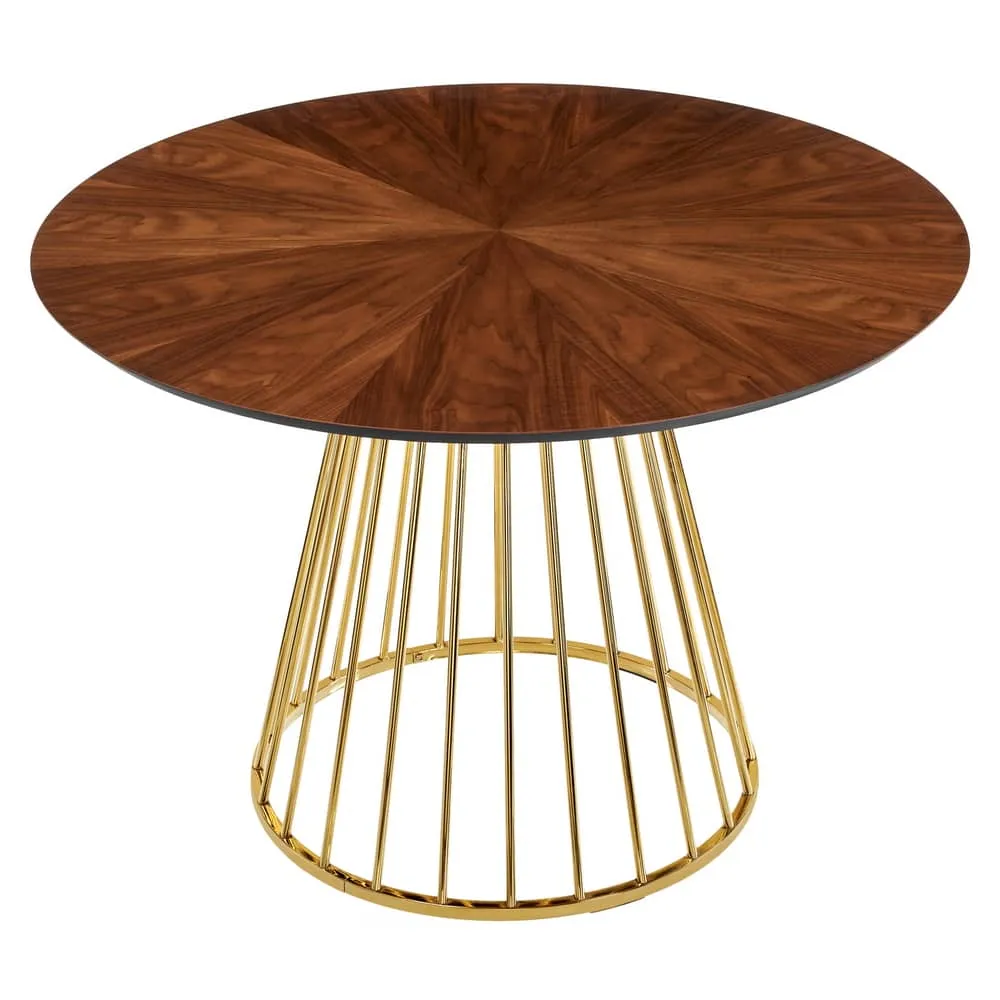 Стол Liverpool, со столешницей, выполненной в роскошном оттенке "итальянский орех" с золотистыми ножками, идеально впишется в любой современный интерьер. Особого внимания заслуживает столешница из МДФ с натуральным шпоном американского ореха из двенадцати элементов с лучевым набором. Каждый стол имеет свой уникальный и неповторимый рисунок, который создала природа. Этот незаменимый и функциональный предмет мебели придется по вкусу не только людям творческим, поклонникам ультрамодных стилей винтаж или лофт, но и более сдержанным натурам, предпочитающим лаконичность и минимализм. Стол Liverpool имеет удобную высоту и способен выдерживать нагрузку до 100 килограммов.
