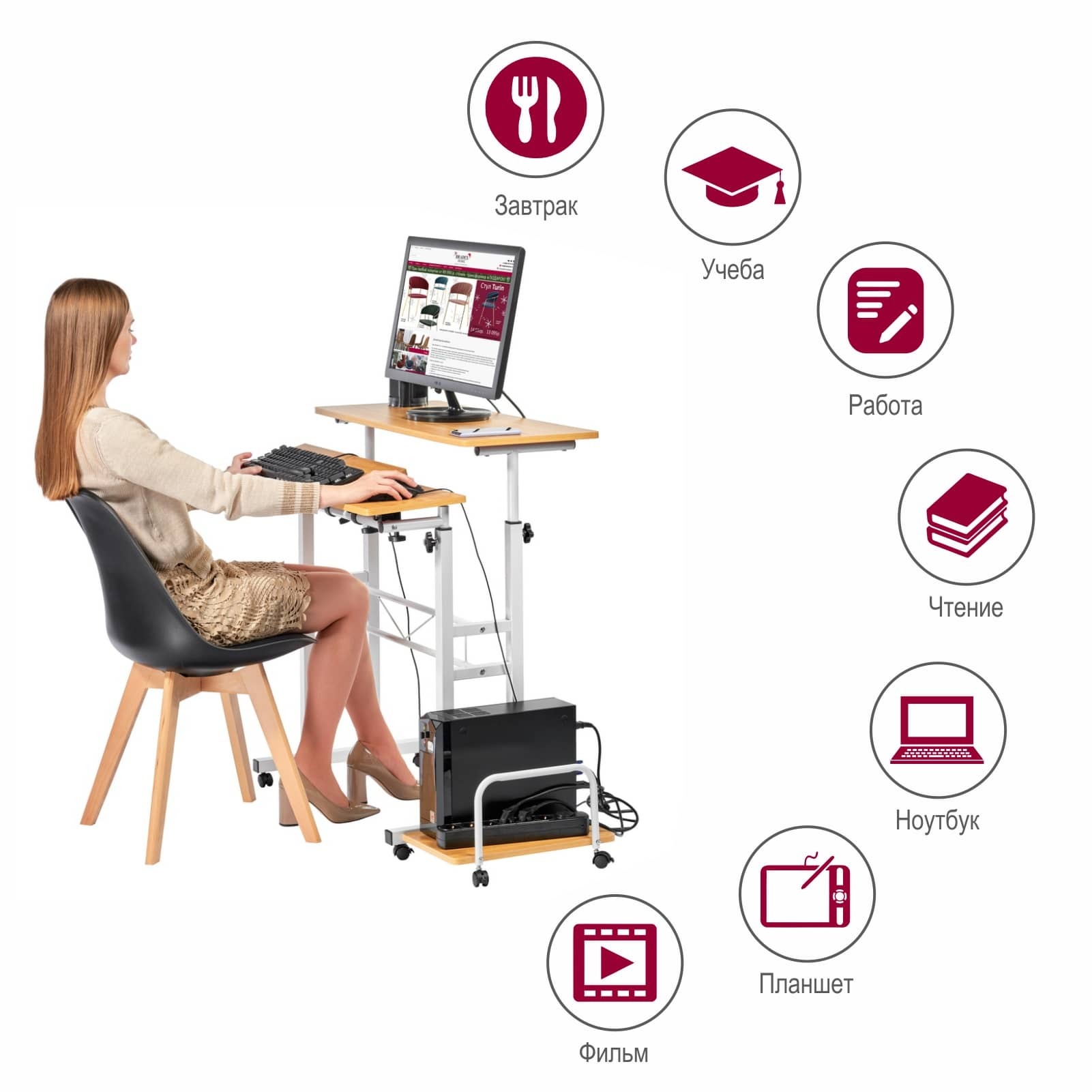 Стол "Shuttle" настоящая находка для владельцев полноразмерных домашних компьютеров. На отдельных специальных поверхностях можно разместить монитор и системный блок. Раздельные поверхности для клавиатуры и мыши можно отрегулировать под разным углом, а ограничитель не позволит клавиатуре соскальзывать. В целом, стол позволит полноценно работать за компьютером не загромождая пространство.