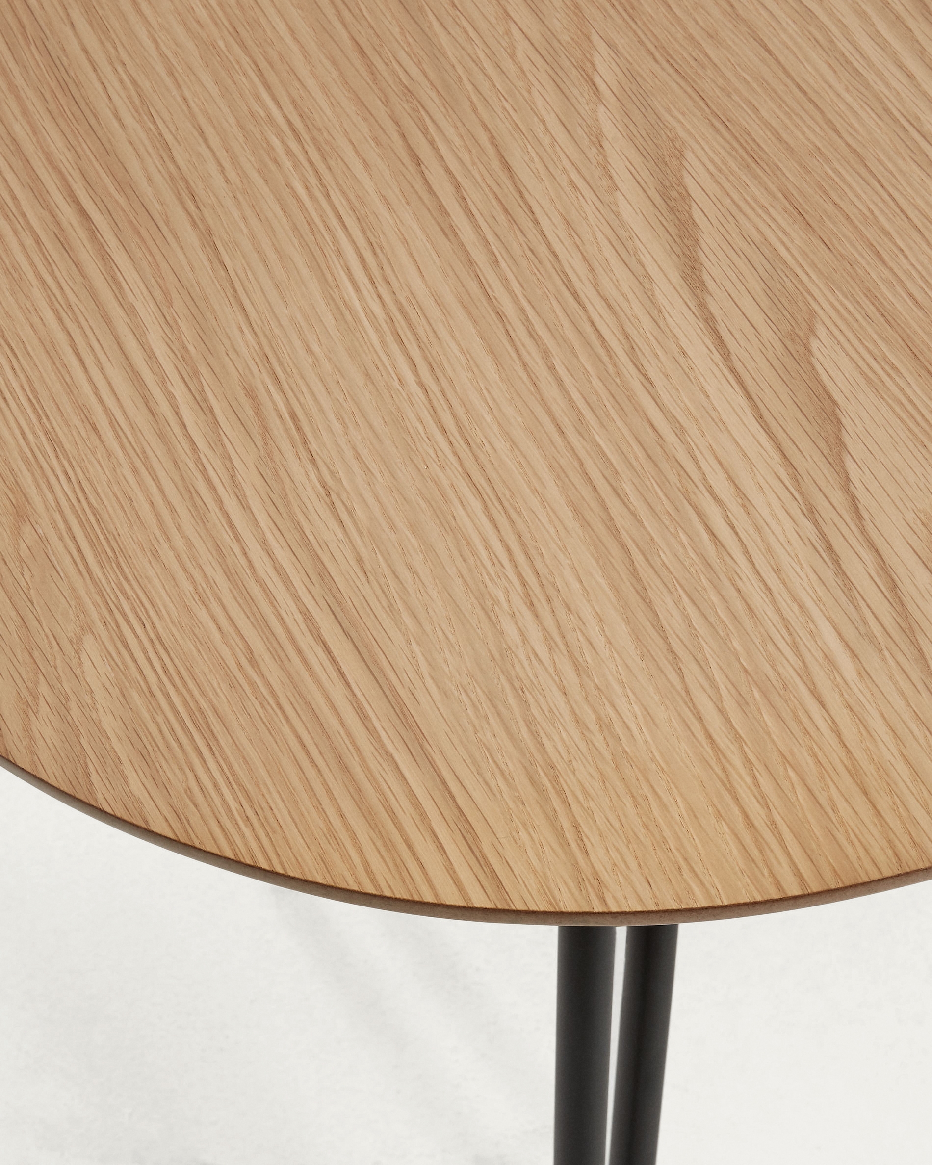 Стол имеет форму вытянутого овала. Столешница сделана из шпона натурального дерева (дуб) и покрыта лаком для защиты от негативного воздействия влаги и загрязнений. Ее толщина составляет 2,5 см, что обеспечивает стойкость к высоким ветровым нагрузкам.