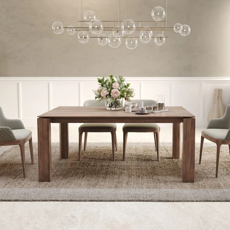 Прямоугольная форма стола Aron идеально подходит для современных интерьеров, обеспечивая достаточное пространство для комфортного размещения гостей и семейных трапез. Столешница выполнена из шпона, что придает изделию элегантный внешний вид и делает его устойчивым к царапинам и другим механическим повреждениям. Столешница также обеспечивает легкость в уходе, не требуя особых усилий для поддержания чистоты. Опора стола изготовлена из МДФ и покрыта шпоном, что обеспечивает не только прочность и долговечность конструкции, но и придает столу эстетически приятный вид, имитируя натуральную древесину.