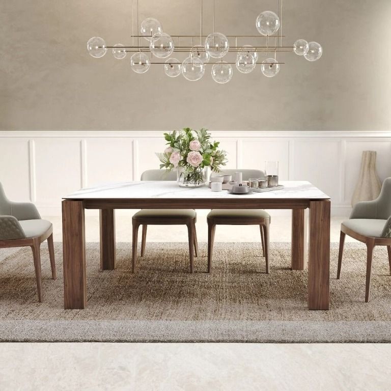 Прямоугольная форма стола Aron идеально подходит для современных интерьеров, обеспечивая достаточное пространство для комфортного размещения гостей и семейных трапез. Столешница выполнена из матовой керамики 6 мм, что придает изделию элегантный внешний вид и делает его устойчивым к царапинам и другим механическим повреждениям. Столешница также обеспечивает легкость в уходе, не требуя особых усилий для поддержания чистоты.