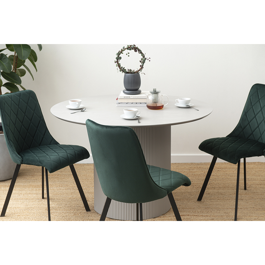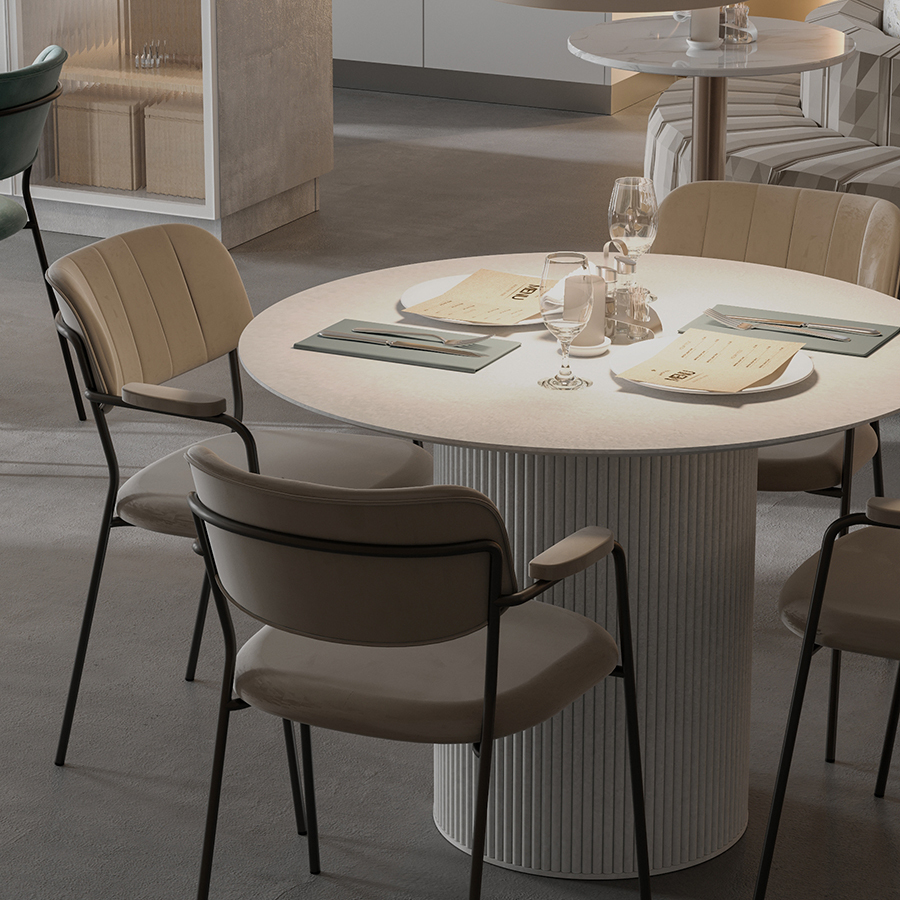 Стол Ellie удачно сочетает практичные материалы и стильный дизайн, благодаря чему отлично подходит для обустройства обеденной зоны и пространства для отдыха. Столешница с меламиновым покрытием не боится воздействия влаги, УФ и не требует специального ухода. Основание из окрашенной МДФ обеспечивает конструкции устойчивость и надежность. Такой столик станет не просто функциональным предметом интерьера, но и оригинальным декором.