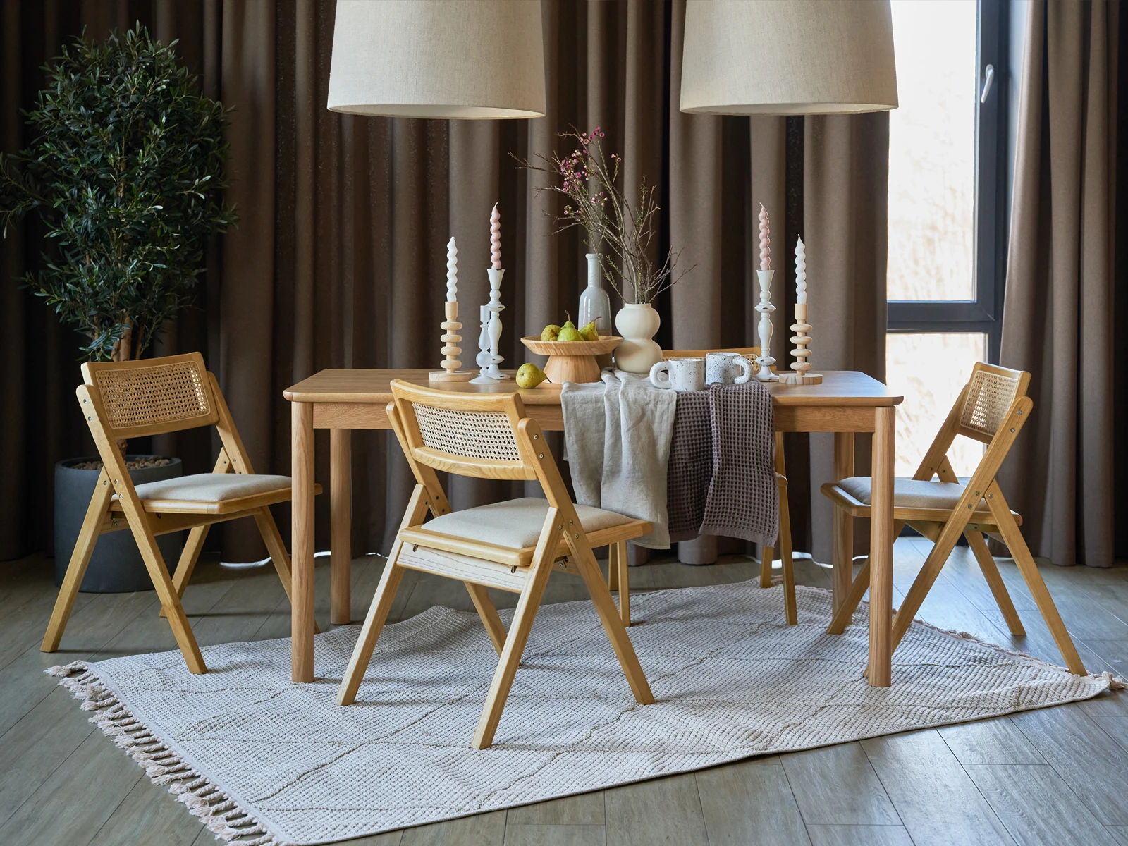 Материал столешницы - МДФ с дубовым шпоном, материал ножек - массив дуба.