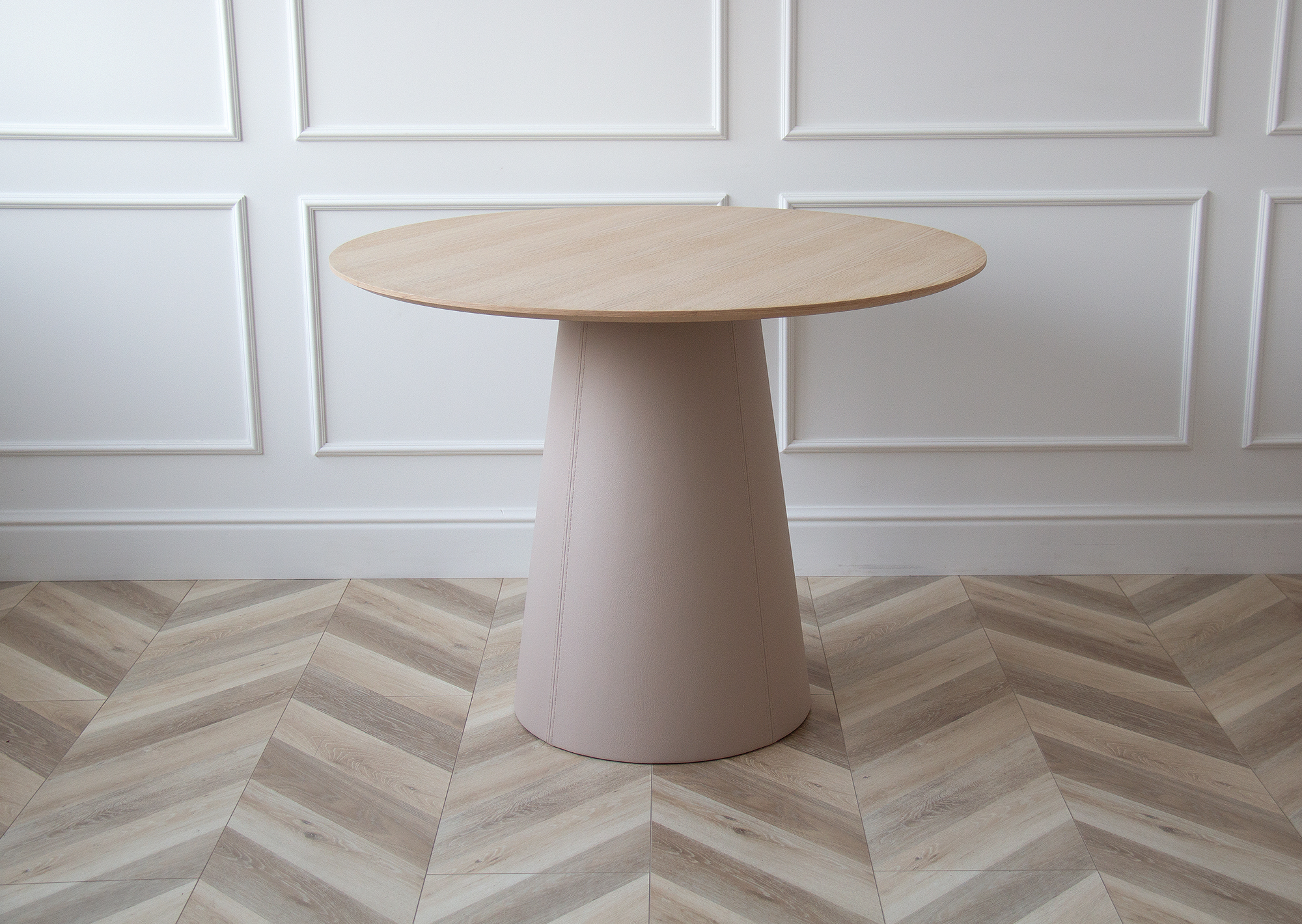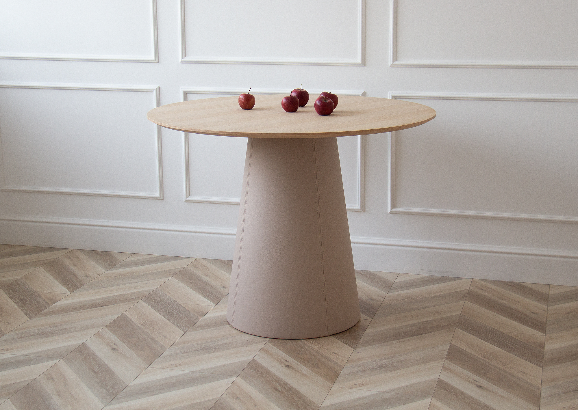 Стол обеденный Lagom D 100 см (натуральный дуб / бежевый, кожа)