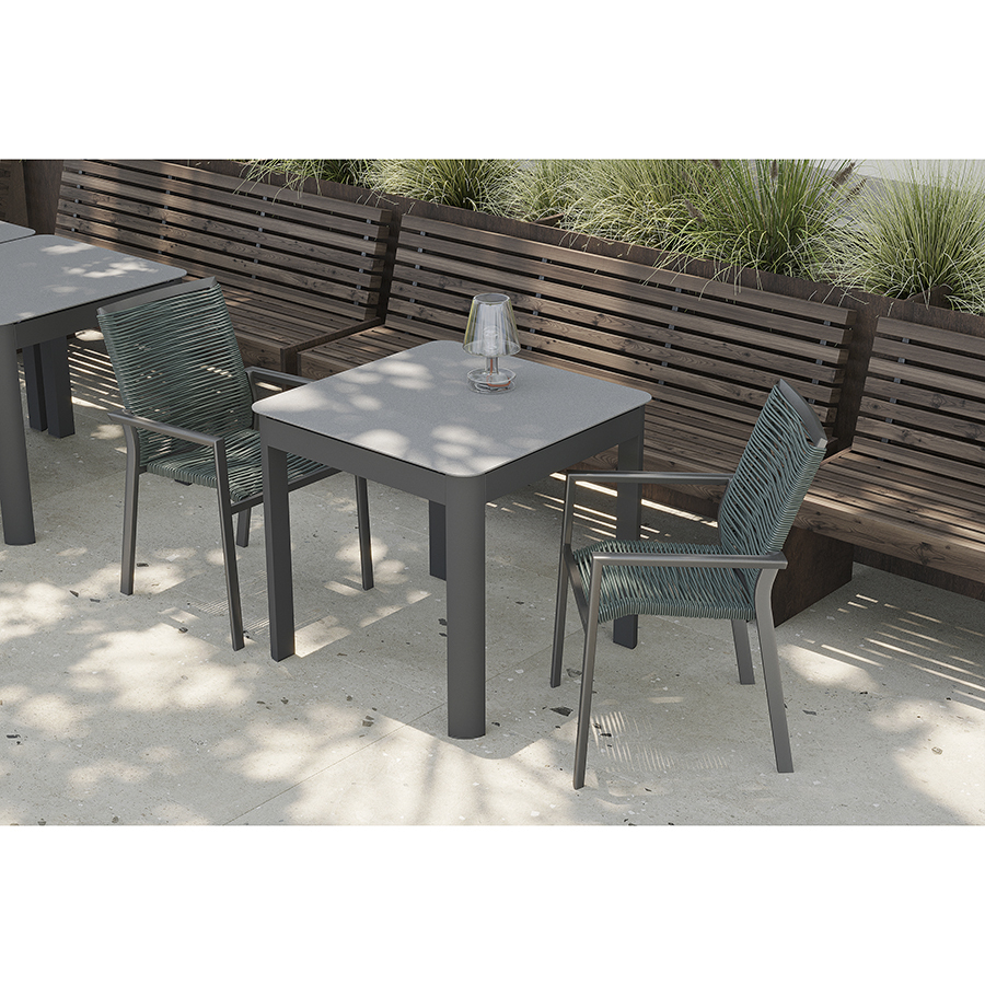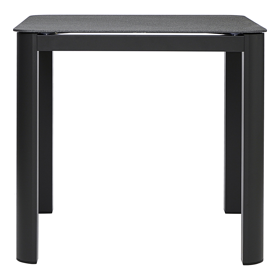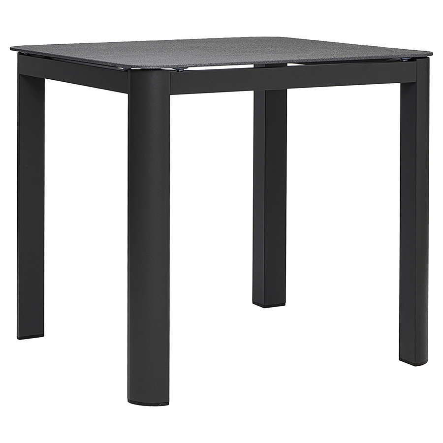 Материал: алюминий, закаленное кварцевое стекло. Размеры: 80х80х75 см. Расстояние между ножками: 76 см. Цвет: темно-серый.