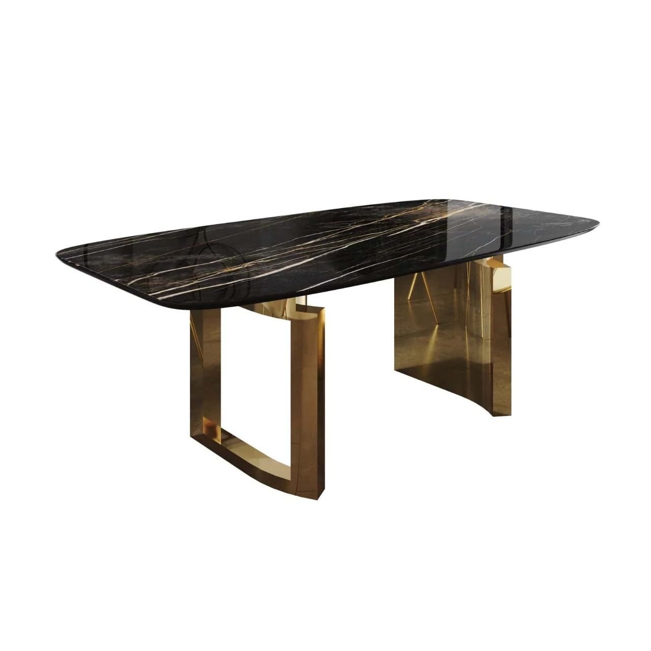 Опора стола выполнена из металла в цвете золото, придает столу современный и изысканный вид, подчеркивая его элегантность. Вы можете выбрать стол с опорой в одном из двух цветов: золото (нитрид титана) или черный.
