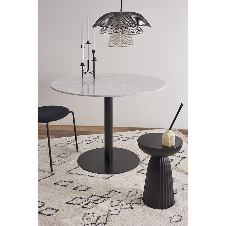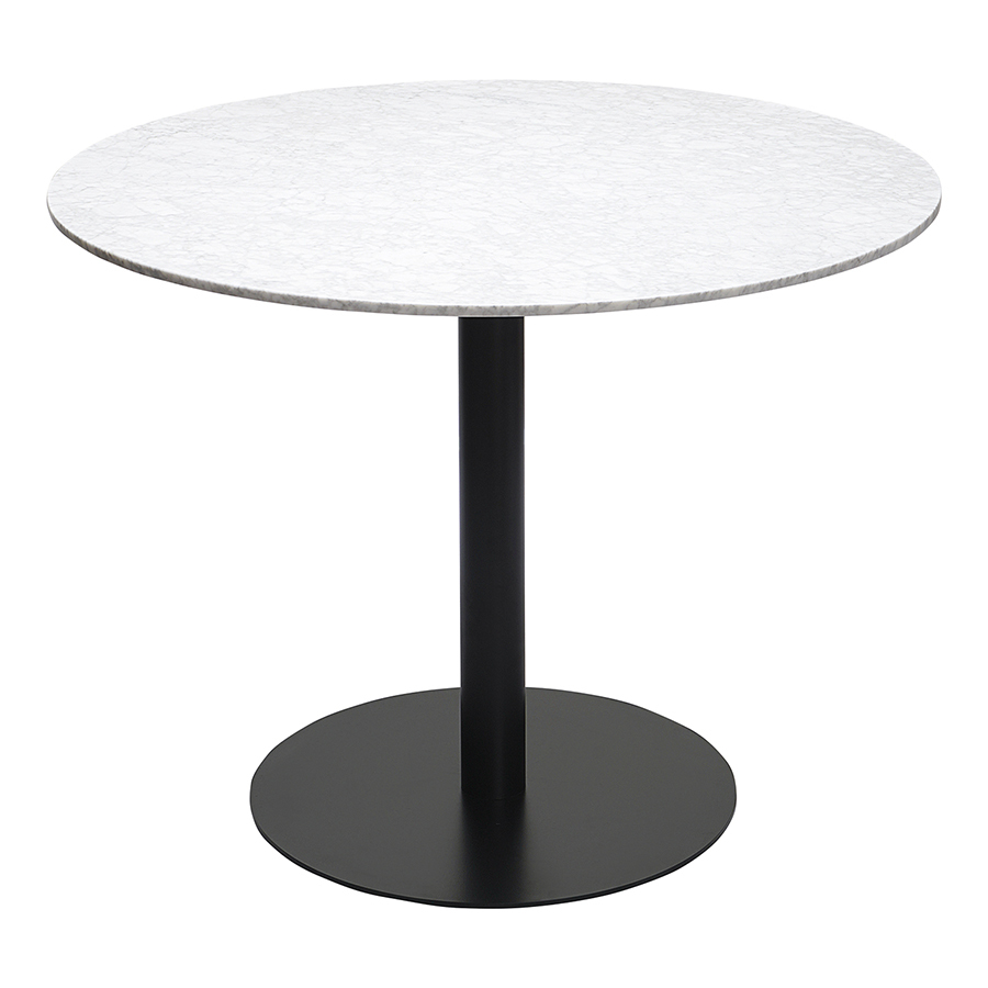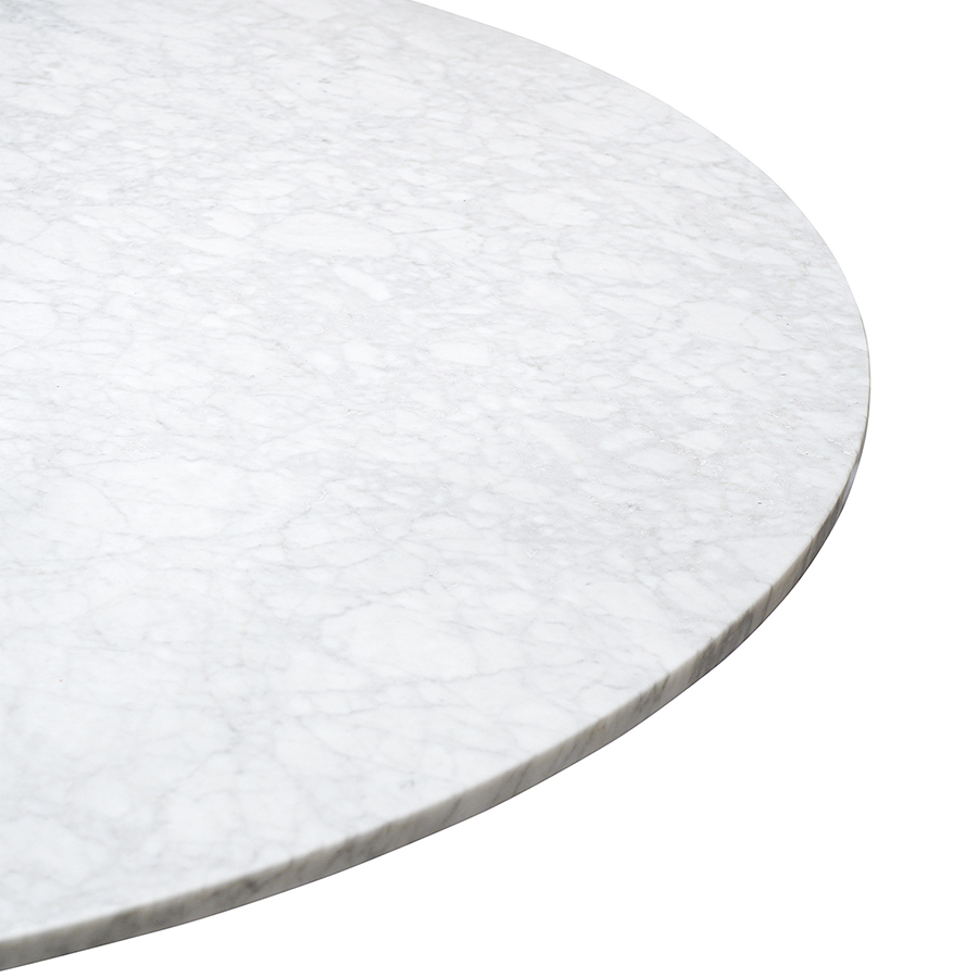 Материалы: столешница – натуральный мрамор, основание – нержавеющая сталь. Размеры: 100х100х75 см. Цвет: белый мрамор/черный.