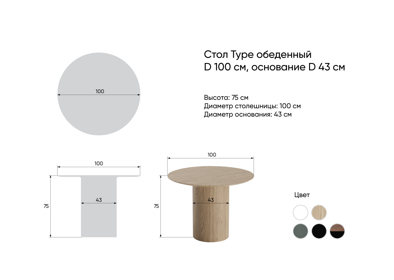 Стол обеденный Type D 100 см основание D 43 см (орех/черный)