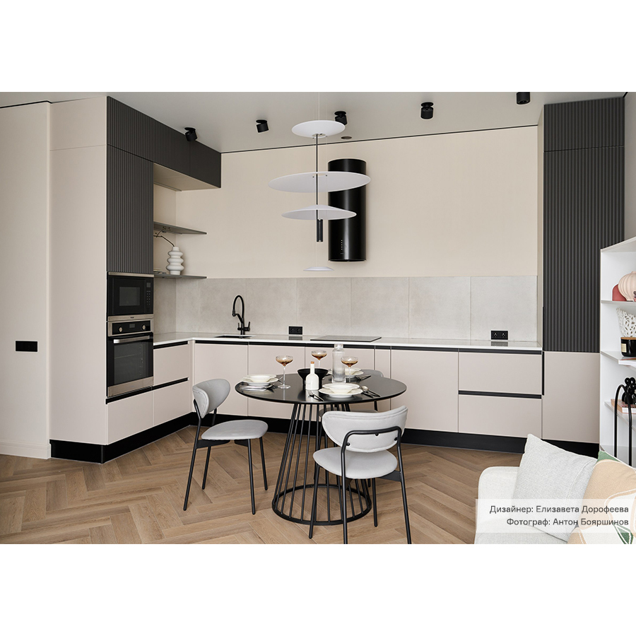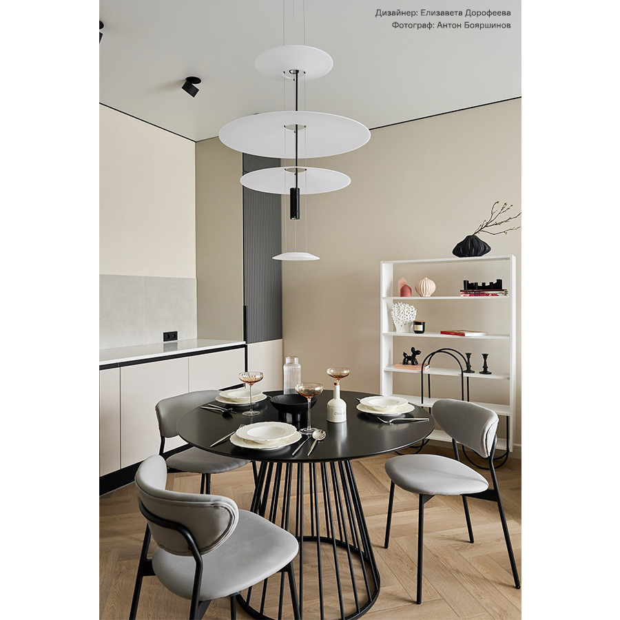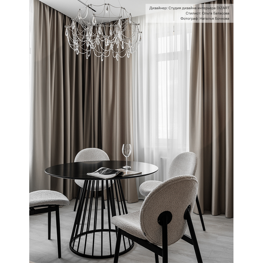 - Стол с круглой столешницей позволяет комфортно разместить большее количество человек, при этом не занимает много места.