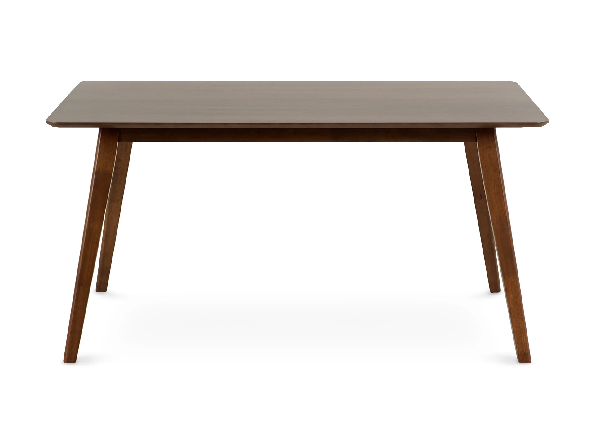 Обеденный стол. Материал столешницы МДФ с шпоном ореха. Ножки изготовлены из цельного каучукового дерева. Толщина столешницы 1,8 см. Длина стола 150 см, ширина 90 см, высота 75 см.