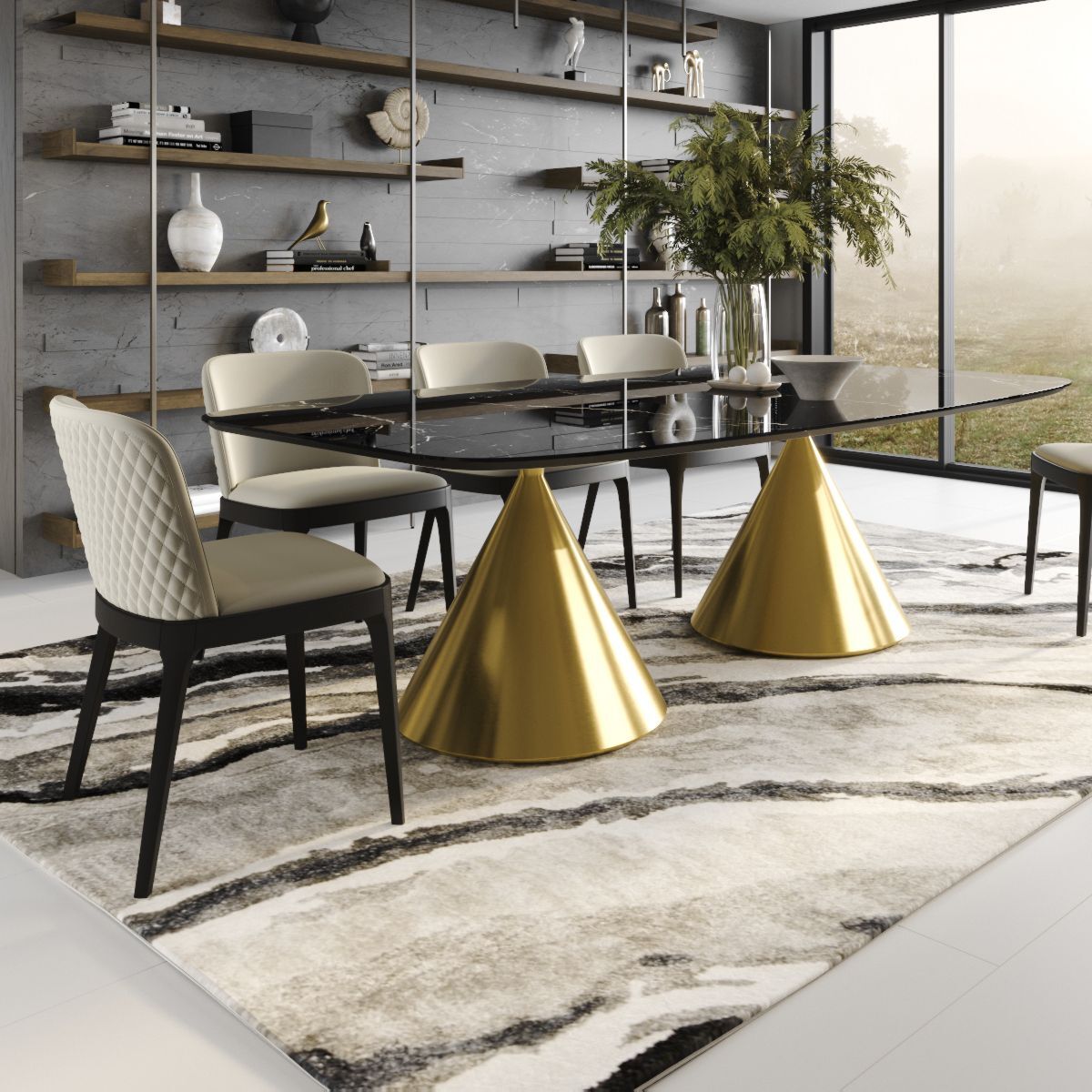 Овальный стол AXIS идеально подходит для создания уютной обеденной зоны в вашем доме или ресторане. Его дизайн и функциональность обеспечивают комфортное пространство для обеденной зоны и встреч с друзьями. Благодаря надежным материалам и качественной конструкции, этот стол будет служить вам долгое время и радовать вас своей эстетической привлекательностью. Стол с овальной столешницей не раскладывающийся, МДФ 19 мм с керамикой 6 мм. Опоры стола выполнены в форме конуса и изготовлена из прочного металла. Цвет опоры - золото, что придает столу современный и стильный вид.