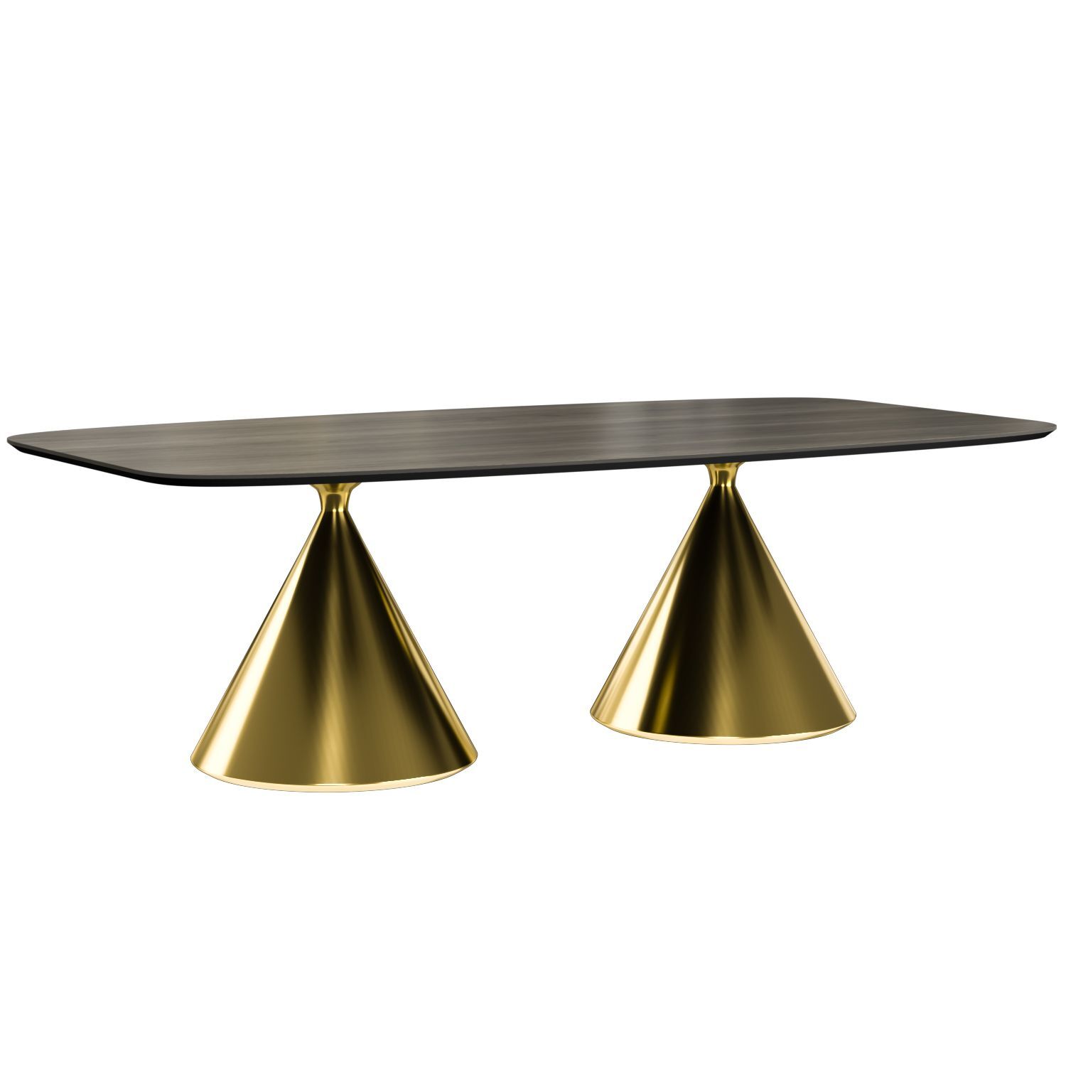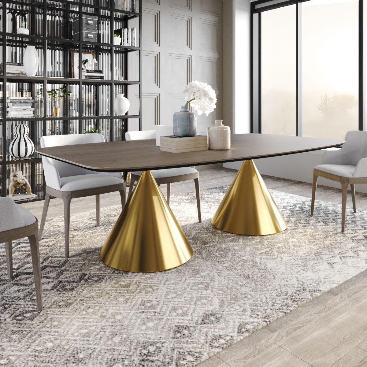 Стол с овальной столешницей не раскладывающийся, МДФ 40 мм с натуральным шпоном 1 мм. Опоры стола выполнены в форме конуса и изготовлена из прочного металла. Цвет опоры - золото, что придает столу современный и стильный вид.