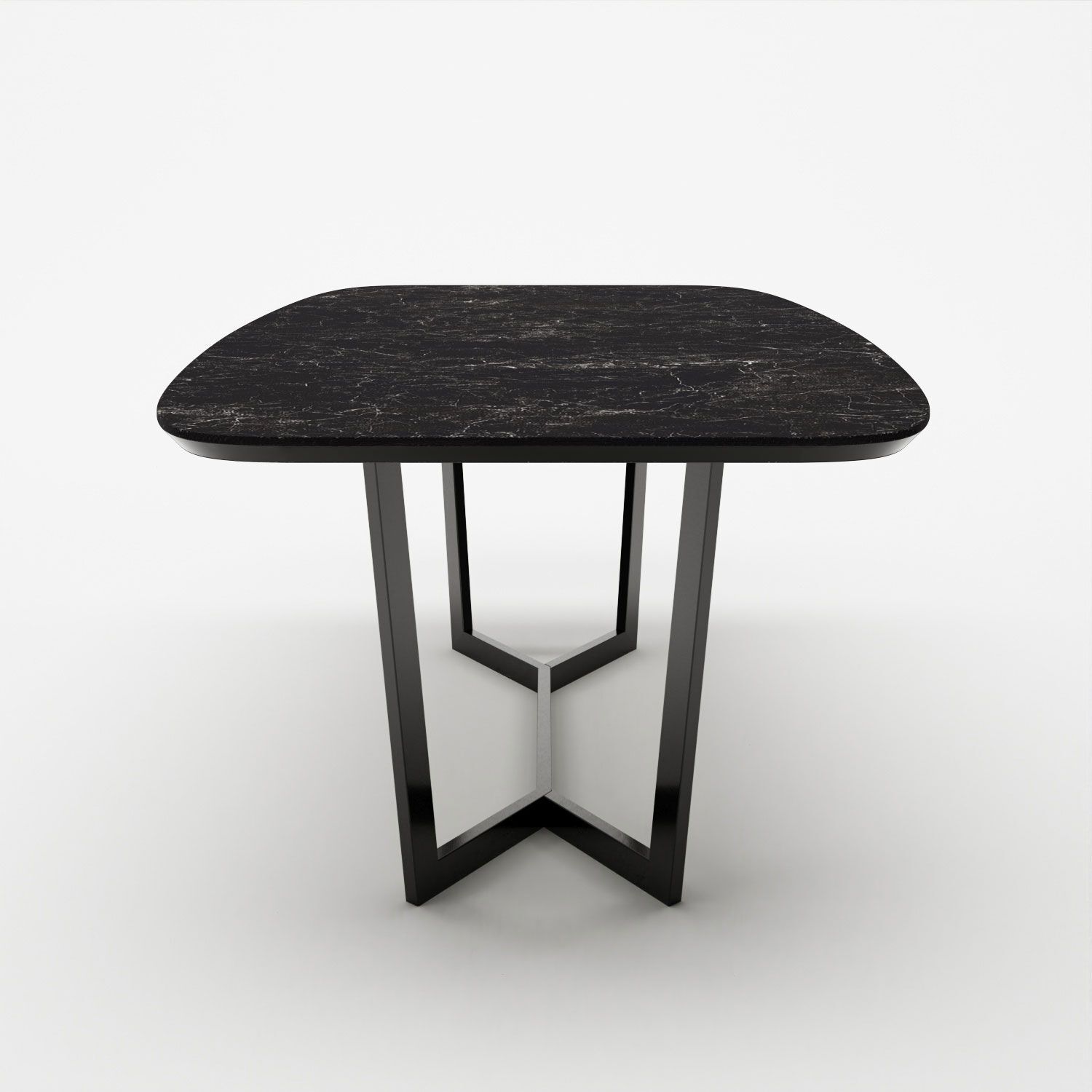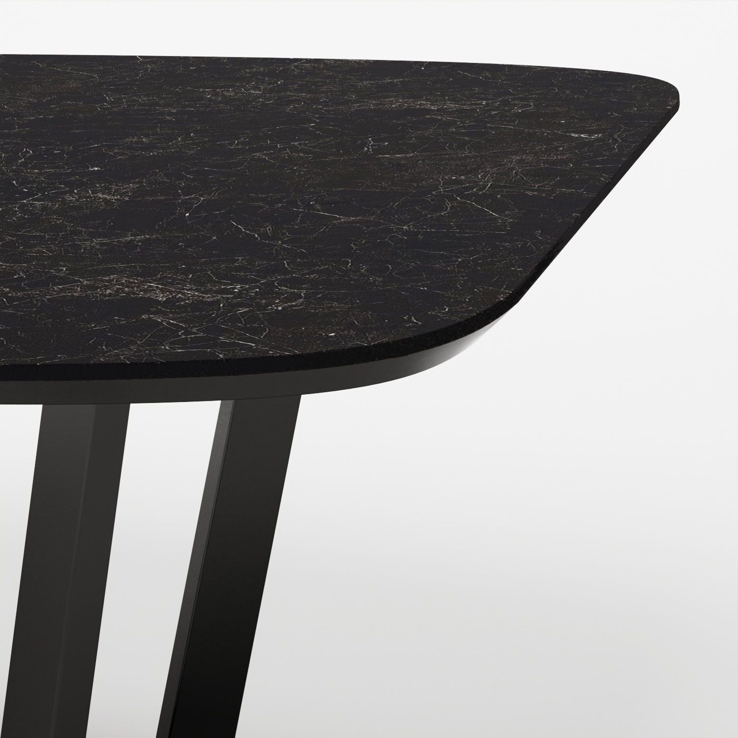 Черный вариант имеет светлые вкрапления и линии. В хаотичных узорах можно найти разнообразные формы, либо воспринимать их как абстракции. За данным столом легко поместится 6 - 10 человек.
