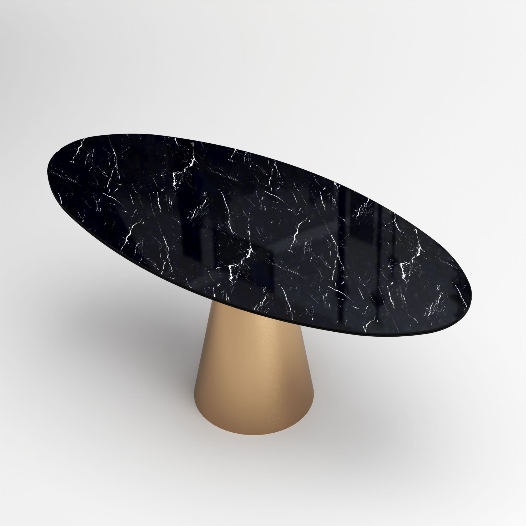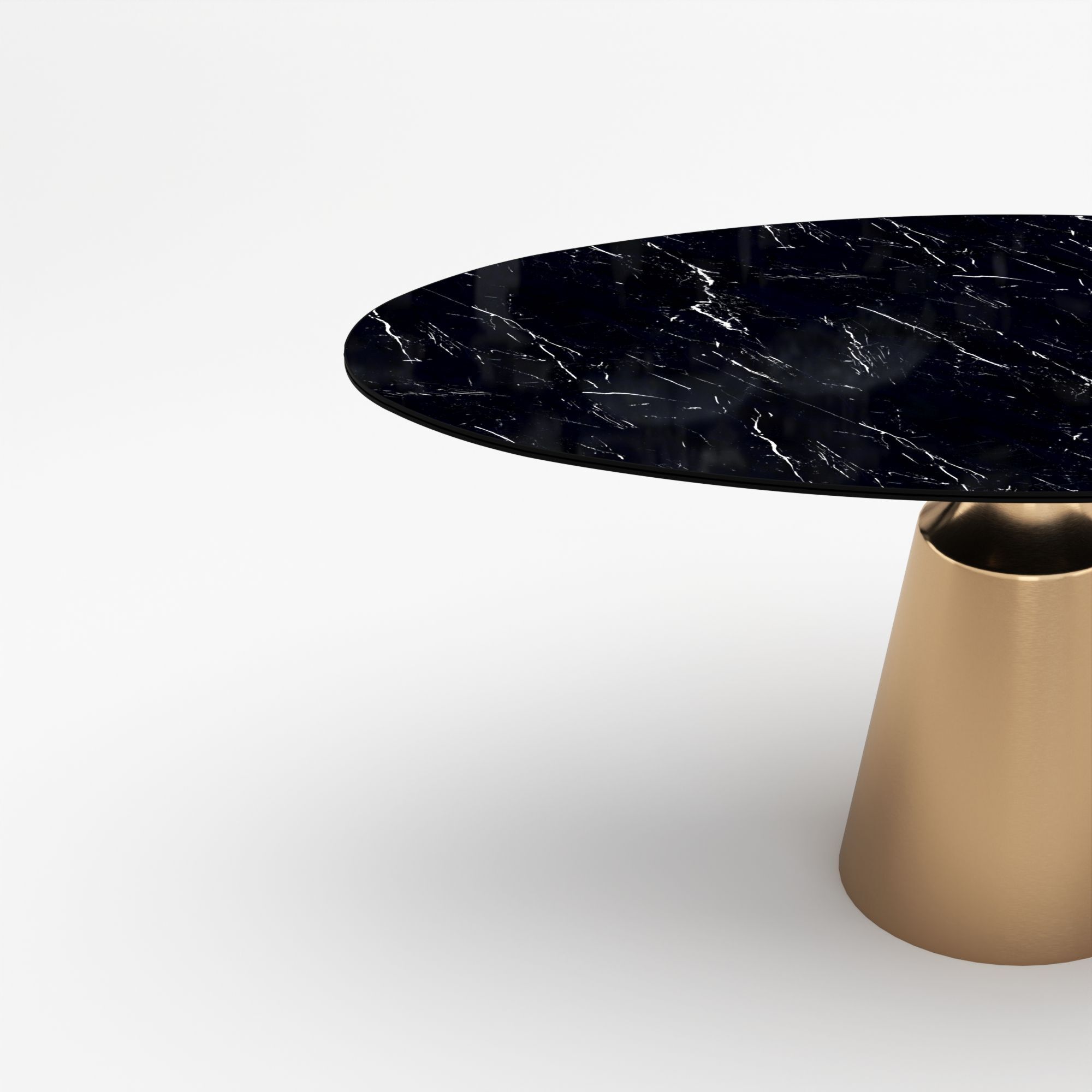 Коллекция обеденных столов Lucas - одна из самых популярных. Включает в себя различные варианты и формы обеденных столов, для персонализации своей собственной дизайнерской столовой. Основание состоит из центрального конусного ствола, выполненного из нержавеющей стали, массивный внешний вид которого облегчается металлическим покрытием нитрид титана цвет золото и соединением с узкой и отступающей столешницей, как бы напоминающей длинную элегантную шею, поддерживающую столешницу. Коллекция включает круглый, овальный, прямоугольный керамический стол Lucas с матовым или глянцевым покрытием и версию со столешницей из шпона. Столешница выполнена из МДФ 19 мм, керамика толщиной 6 мм. Ее органический и натуральный внешний вид подчеркивает путь бренда к экологичному дизайну, который создается из натуральных материалов с использованием методов с низким энергопотреблением.